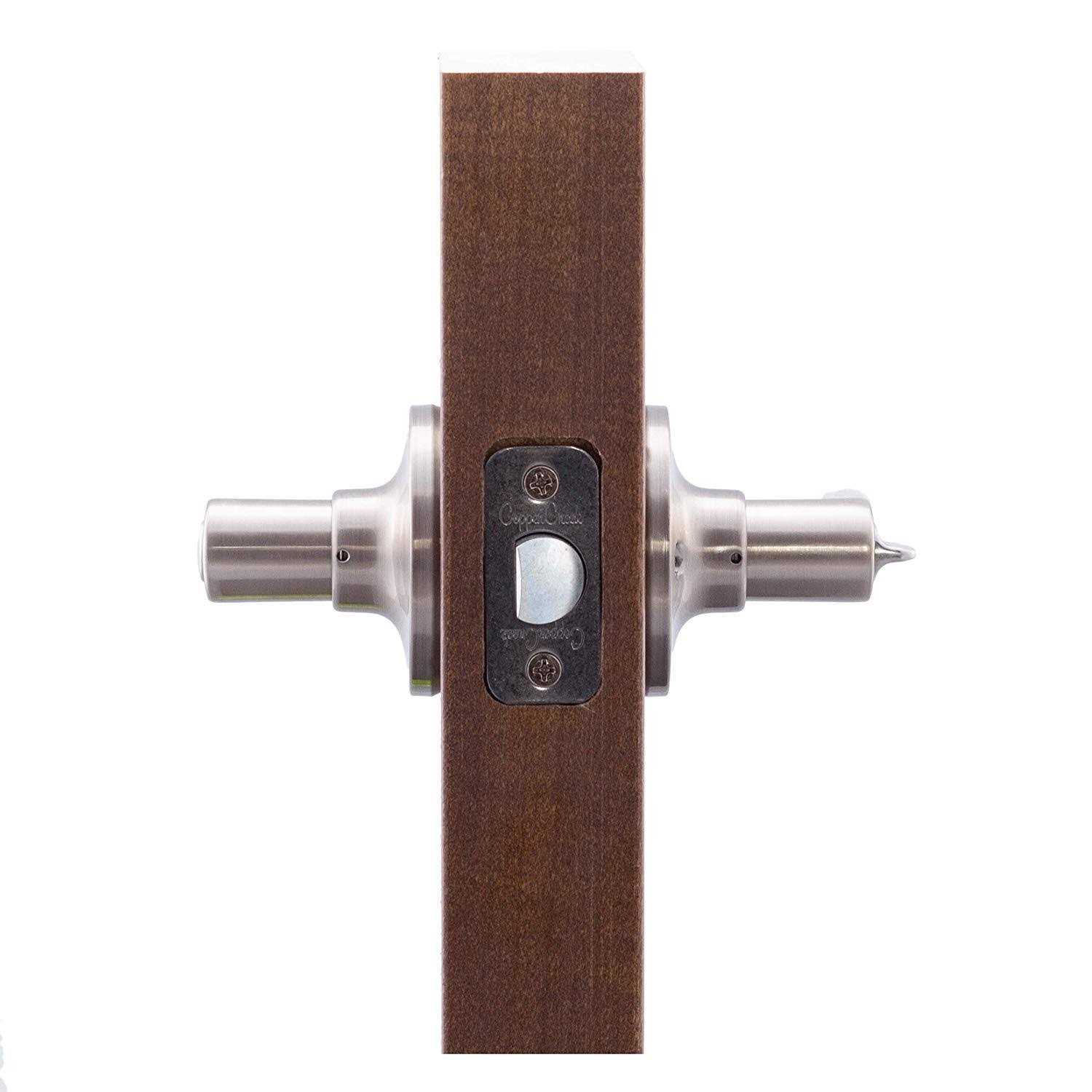 Door Levers by Copper Creek. Details: Whether you are doing a remodel, or building a new home, condominium or apartment, this rustic modern styled privacy door lever provides the perfect balance between style and superior security. The Satin stainless finish is attractive, resists tarnish and smudging, and offers great durability.These locksets feature round corner adjustable latches, and sized to fit most door. Copper Creek M-Series Levers provide excellent value. These locksets are manufactured to the highest standards using the finest materials available. They are time tested to meet the toughest national building codes for new construction. These knobs feature round corner adjustable latches that fit most doors, nickel plated bolts, easy installation and a rich finish.