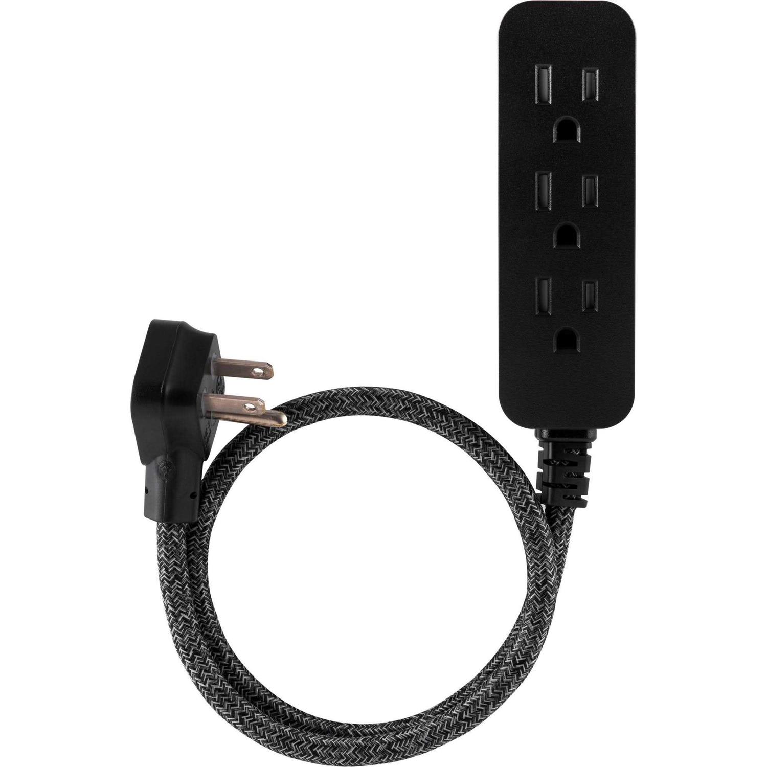 Color:Black Heather Extend your style into the future with the Cordinate 3-Outlet Extension Cord. While most cords interrupt or distract from your home’s décor, this unique designer cable only contributes to the overall charm of your space. The 2 ft. woven black and gray chevron fabric cord cover accents your home or work setup. The extra layer of fabric not only increases the cable’s durability, but also keeps the cord from being bent and tangled. The thoughtful construction of the extension cord includes a space-saving flat plug, making it convenient to connect your devices where space is limited. For a premium design that offers equal parts fashion and function, choose the Cordinate 3-Outlet Extension Cord.