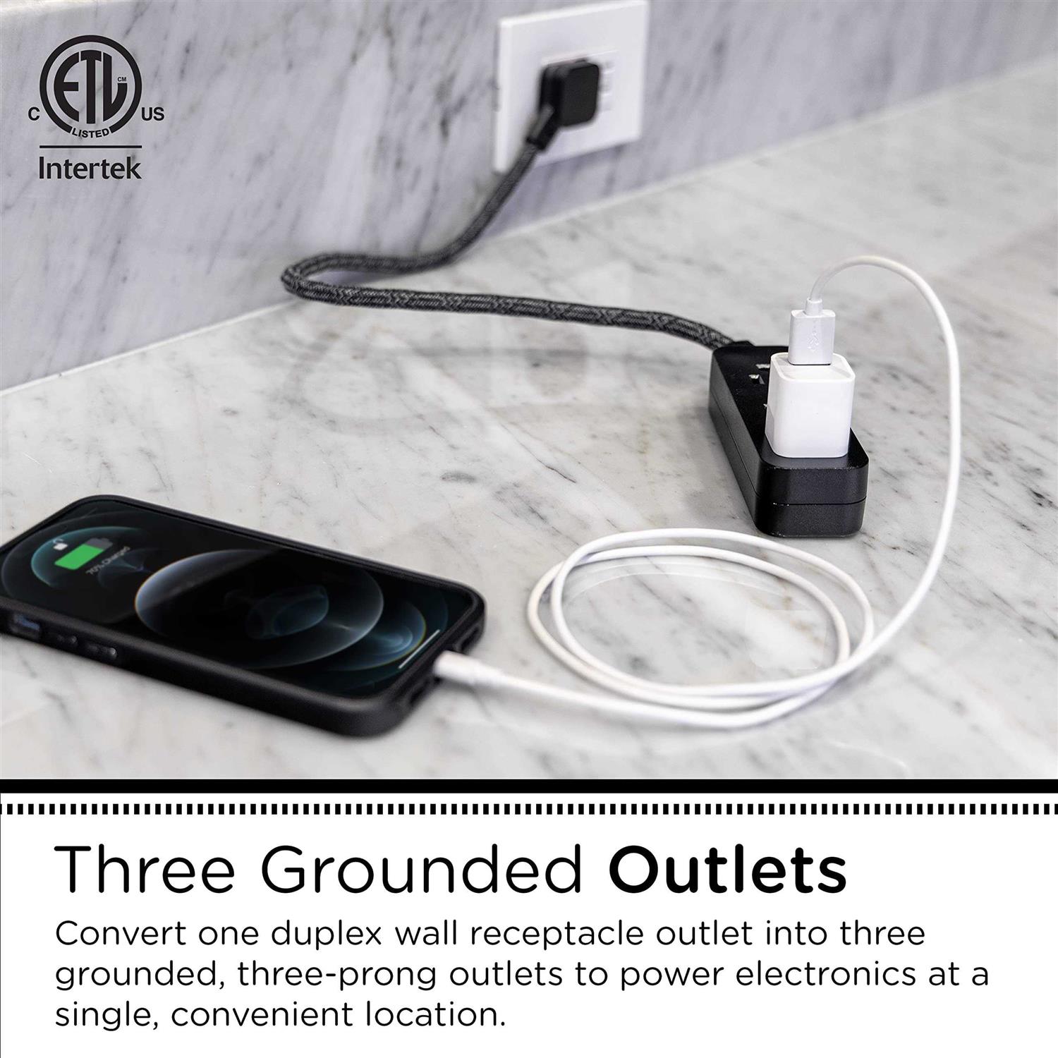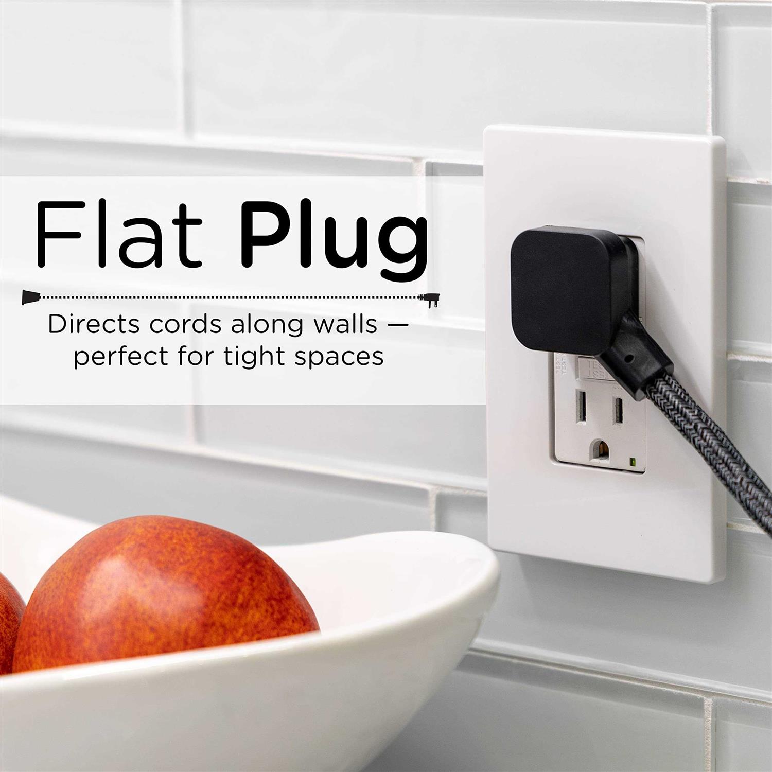 - Braided Cord – The 17in. stylish mini braided cord is tough and tangle resistant, meaning your outlet extender is built to last