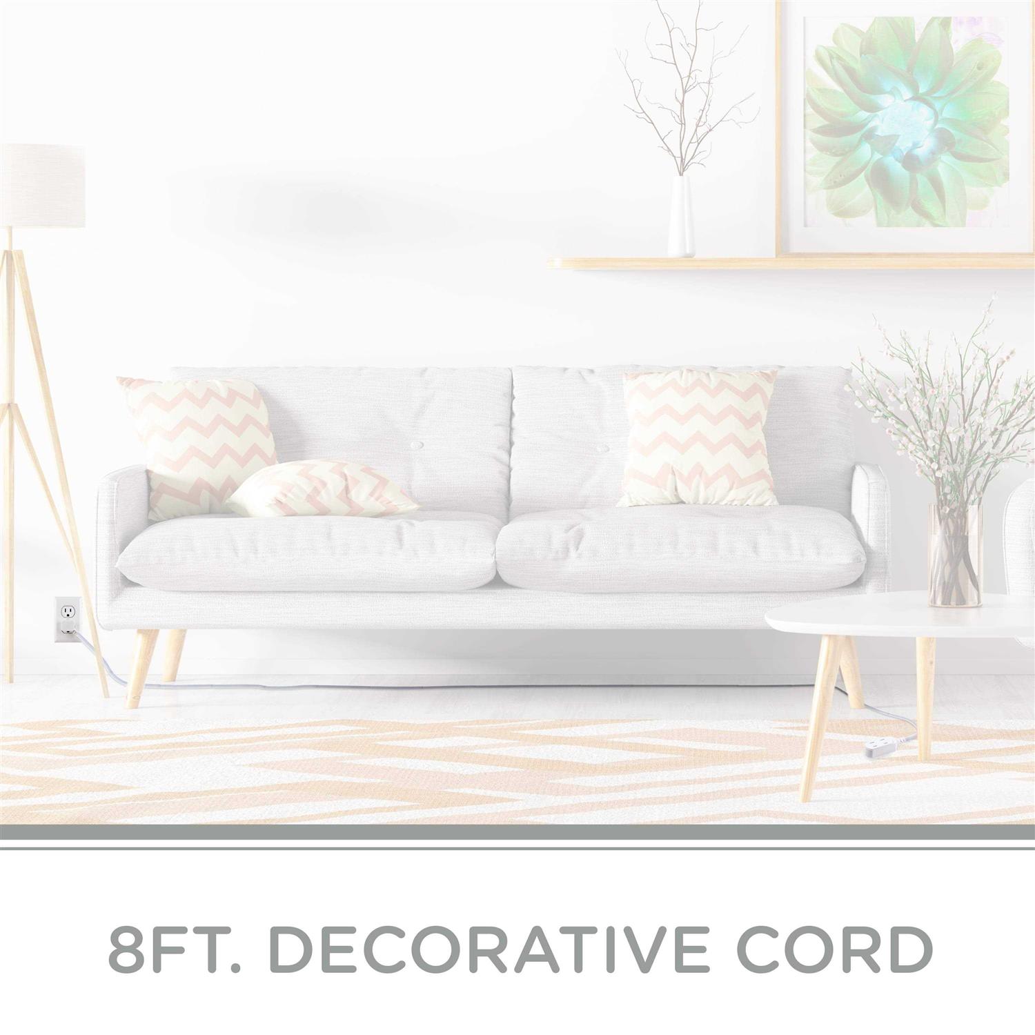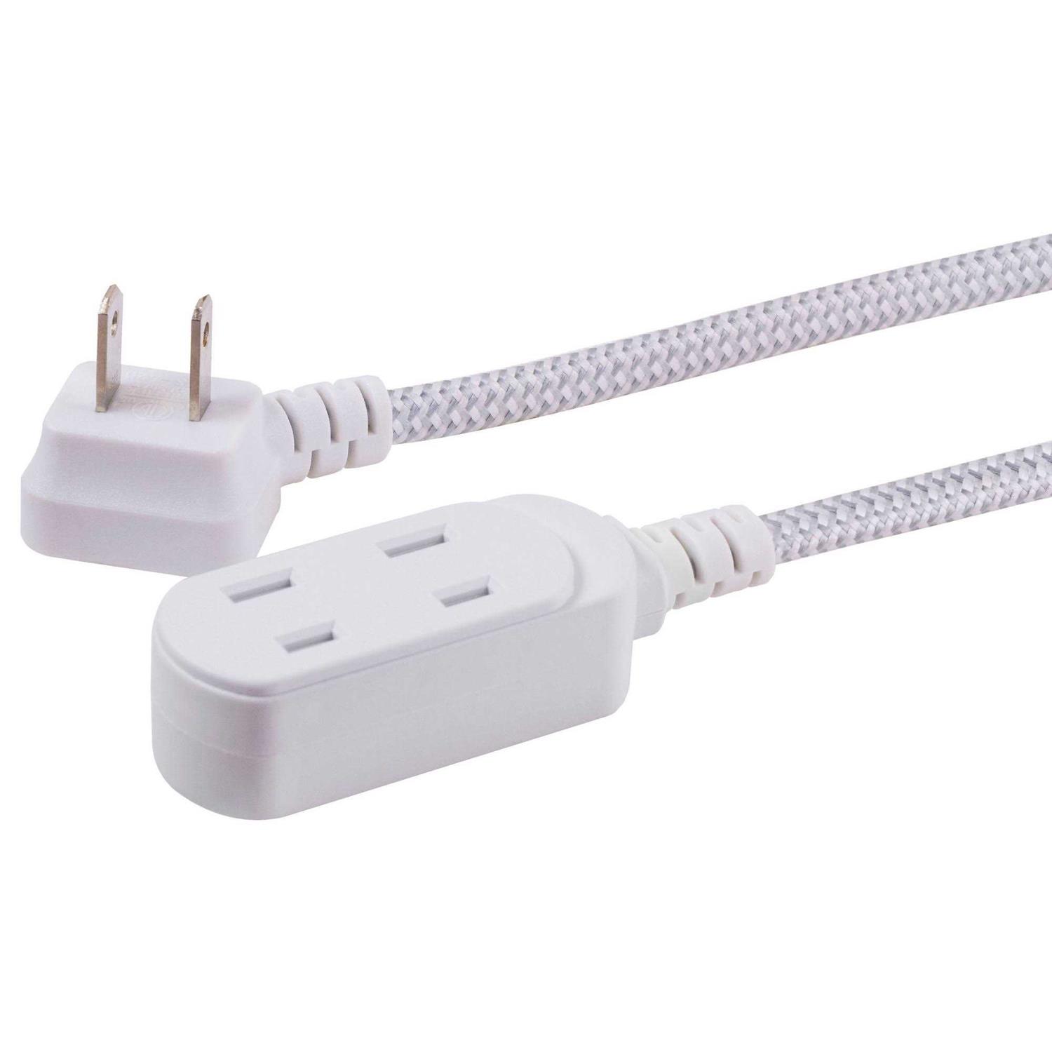 Extend your style into the future with the Cordinate 3 AC Extension Cord. This unique designer cable contributes to the overall charm of your space without interrupting or distracting from your home’s décor. With three polarized outlets the extension cord is ideal for powering lamps fans and other household electronics while the extra-long 8-foot cord keeps everything within reach. Additionally the low-profile plug makes it easy to plug in where space is limited. To prevent accidental shocks the extension cord includes slide-to-lock safety covers on each outlet. For a premium design that offers equal parts fashion and function choose the Cordinate 3 AC Extension Cord. Flat Plug The sleek design of the low-profile flat plug allows your furniture and media to sit closer to the wall. Power More Three 2-prong outlets are perfect for table and floor lamps, appliances, phone chargers and other electronic equipment. Extended Reach Power strip provides optimal reach with the extra-long, 8-foot power cable. Safety Slide-to-lock safety outlets protect you from electrical shock when outlets are not in use.