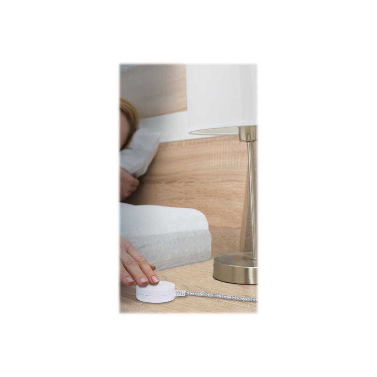 The Cordinate Tabletop Switch is unlike any other extension cord on the market. Theres no need to strain to reach switches in tight spaces or move furniture to access outlets. Simply connect your lamp, seasonal lights, Wi-Fi router or other electronics to the three-prong plug, extending an ON/OFF power button up to 6ft. Draw zero power from your devices in the OFF setting and save money by only using your electronics when you need them. As a bonus, the white and gray braided fabric cord resists tangles, reduces fraying and comes in a complementary chevron pattern sure to accentuate existing dcor. The unique side-angle design of the plug means this extension cord doesnt block your other outlet. The power switch can be placed securely on any flat surface thanks to its slip-resistant base or mounted to a wall using the keyhole slot on the back. With the power button positioned where you need it, turn your devices on or off with a simple tap. Make the switch to the Cordinate Tabletop Switch.