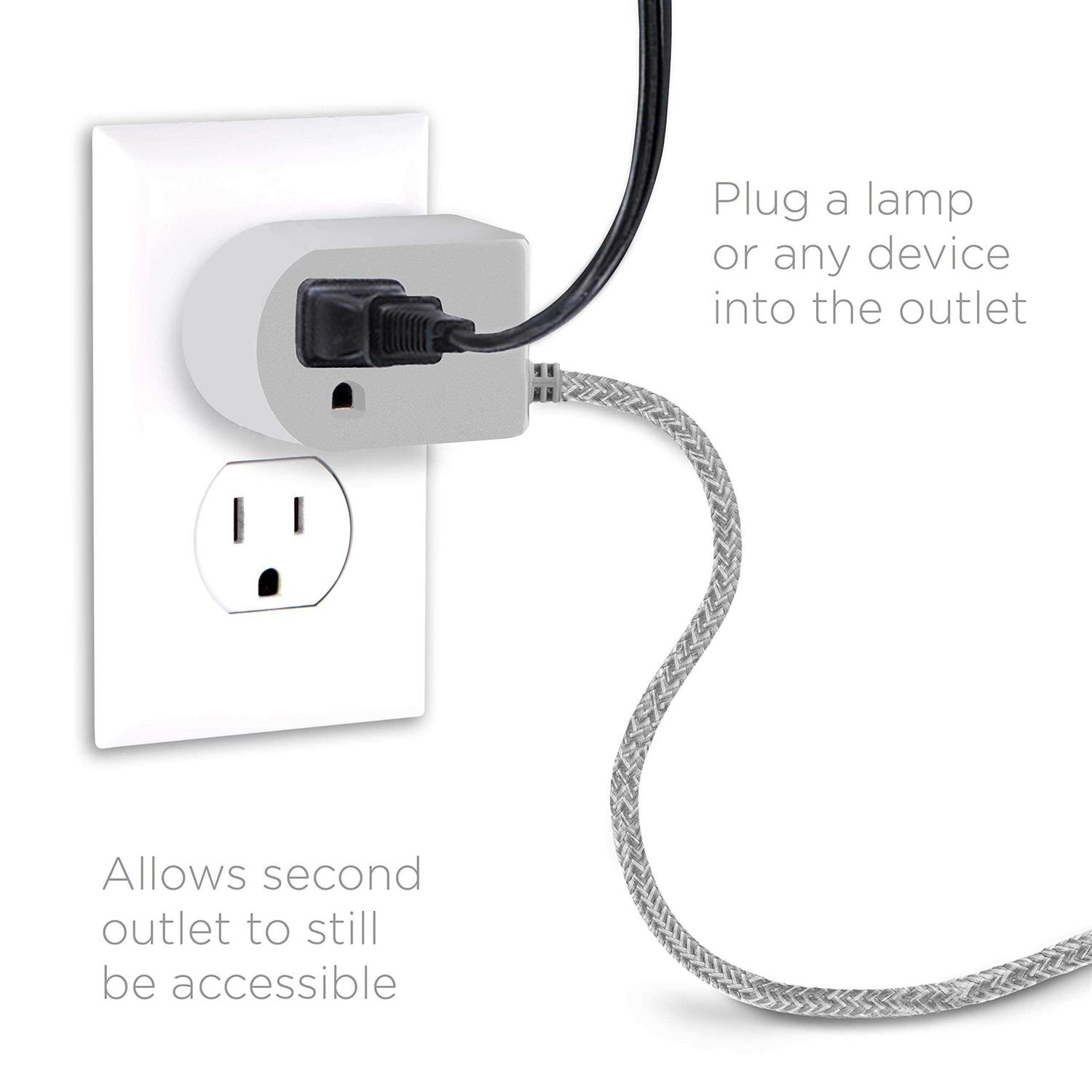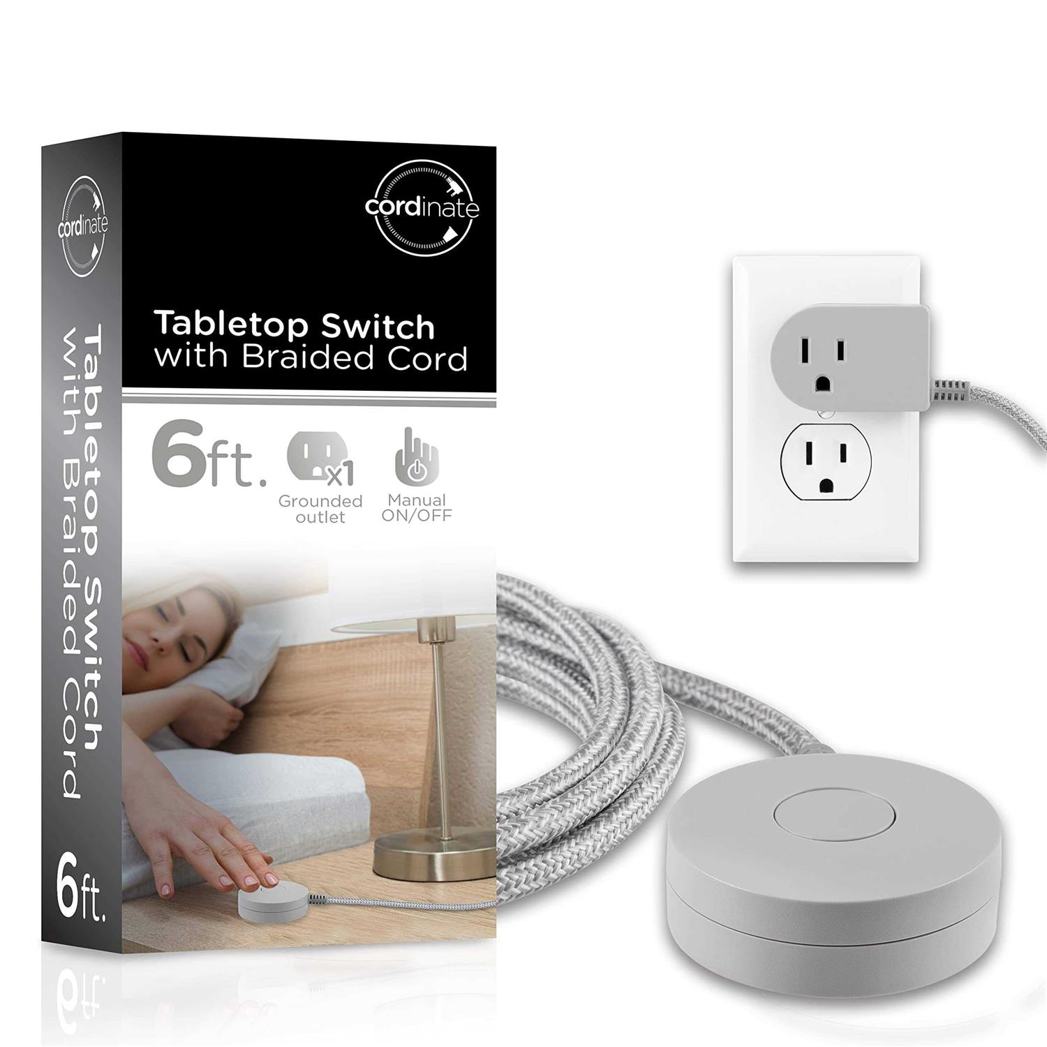 Cordinate Designer On/Off Switch Plug, 6 ft Braided Power Cord, 3 Prong, Slip Resistant Base, Tabletop or Wall Mount, Perfect for Lamps/Seasonal