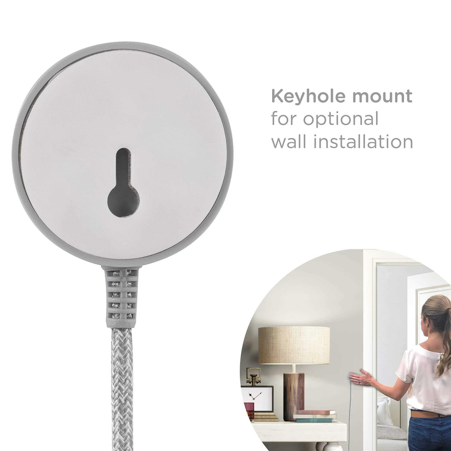 - Secure — This sturdy switch has a non-slip base for tabletop use and a keyhole on the back to mount to the wall inside the home or office.