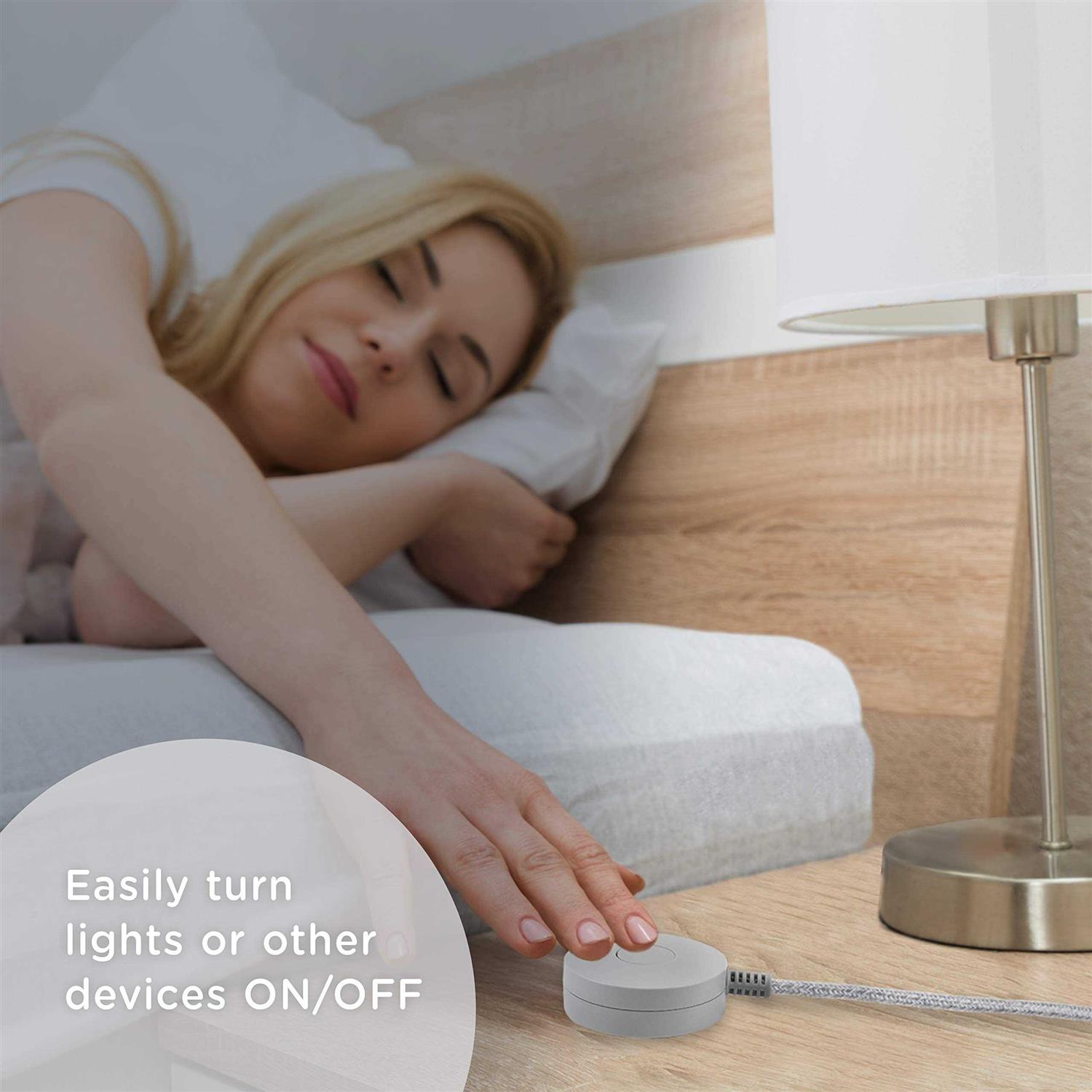 The Cordinate Tabletop Switch is unlike any other extension cord on the market. Now there’s no need to strain to reach switches in tight spaces or pull out furniture to access outlets. Simply connect your lamp seasonal lights Wi-Fi router or other electronics to the 3-prong plug extending an ON/OFF power button up to 6ft. Draw zero power from your devices in the OFF setting and save money by only using your electronics when you need them. As an added bonus the gray braided fabric cord resists tangles reduces fraying and comes in a complementary chevron pattern that is sure to accentuate existing décor. The unique side-angle design of the plug means this extension cord doesn’t block your other outlet. The power switch can be placed securely on any flat surface thanks to its non-slip base or mounted to a wall using the keyhole slot on the back. With the power button positioned where you need it turn your devices on or off with a simple tap. Make the switch to the Cordinate Tabletop Switch.