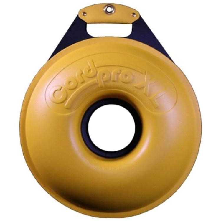 The Cordpro cord managing device is a time proven performer for organizing your residential cords, cables, and hoses. Slightly larger than our original unit, the Cordpro CP-100, the Cordpro XL has approximately twice the capacity of the CP-100. The CP-XL holds up to 150 of 12/3 cord or up to 100 of 10/3 cord. The Cordpro is great for storing cords and hoses in the yard, the garage, or in an RV.Holds up to 150 ft. of 12/3 electric cord, 100 ft. 10/3 electric cord, 60 ft. of 3/8 air hose, 50 ft. 1/2 air hose, 50 ft. garden hose, 50 ft. 30 amp RV power cord.For use with cords, pull cord halfway through the unit, then wind each half in the SAME direction. Both halves will unwind at the same time.For use with hoses, wind each half in OPPOSITE directions. Both halves will then only unreel from one side at a time. This prevents kinking or tangling.15-5/8 in diameter, 18-1/4 high including handle, and 4-1/2 deepFormulated from the same material as pickup truck bed liners and are good to minus 100 degrees F.