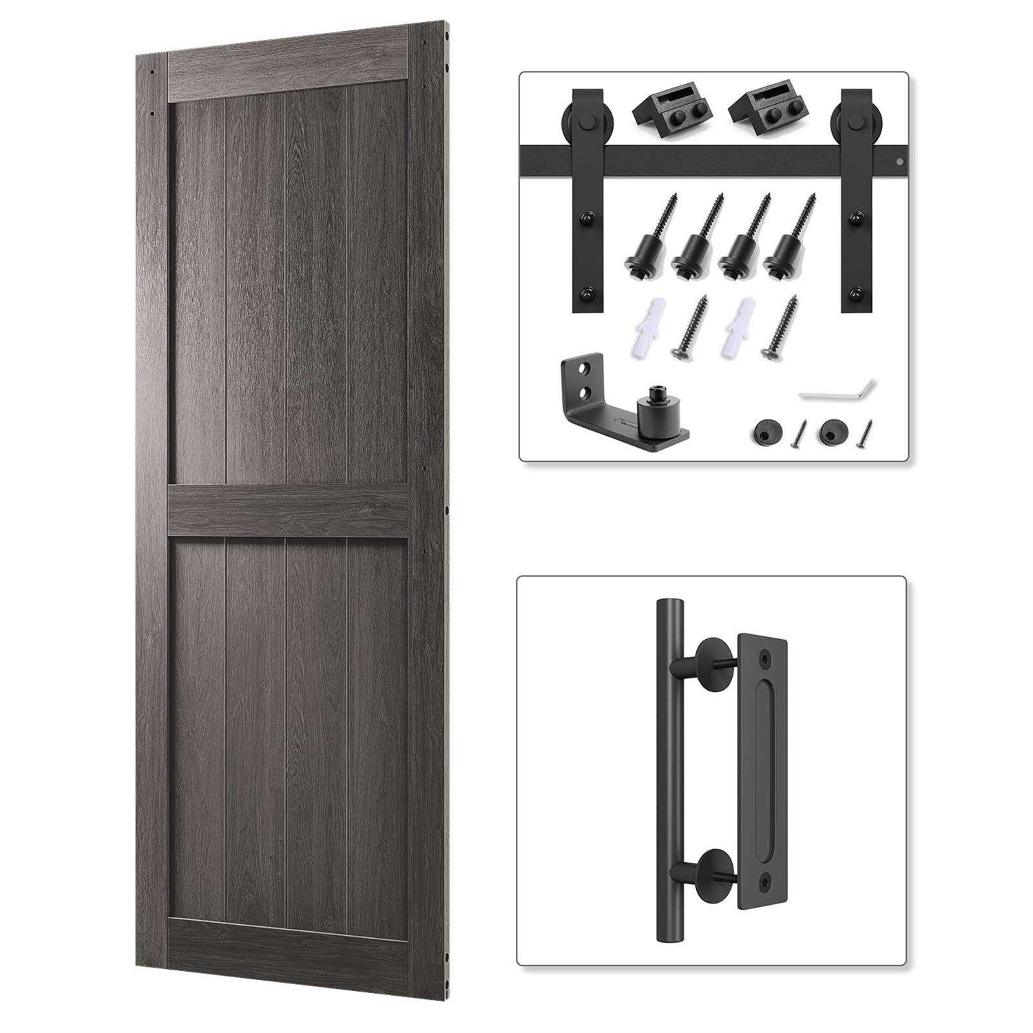 COSHOMER 36in x 84in MDF Sliding Barn Door with 6.6ft Barn Door Hardware Kit & Handle