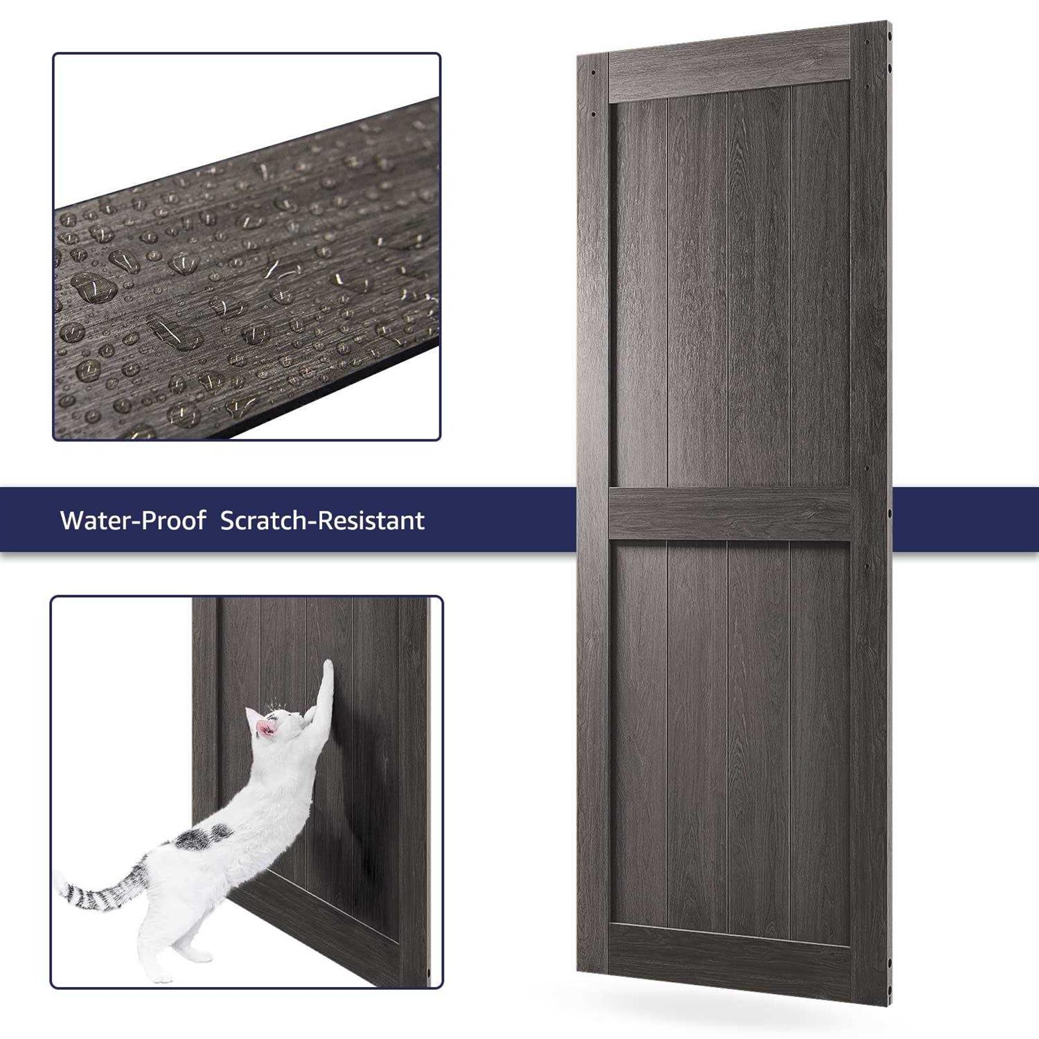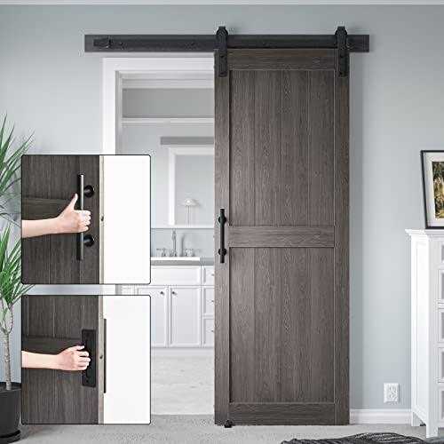 COSHOMER 30in x 84in MDF Sliding Barn Door with 5ft Barn Door Hardware Kit & Handle, Pre-Drilled Holes Easy Assembly -Solid Barn Door Slab Covered