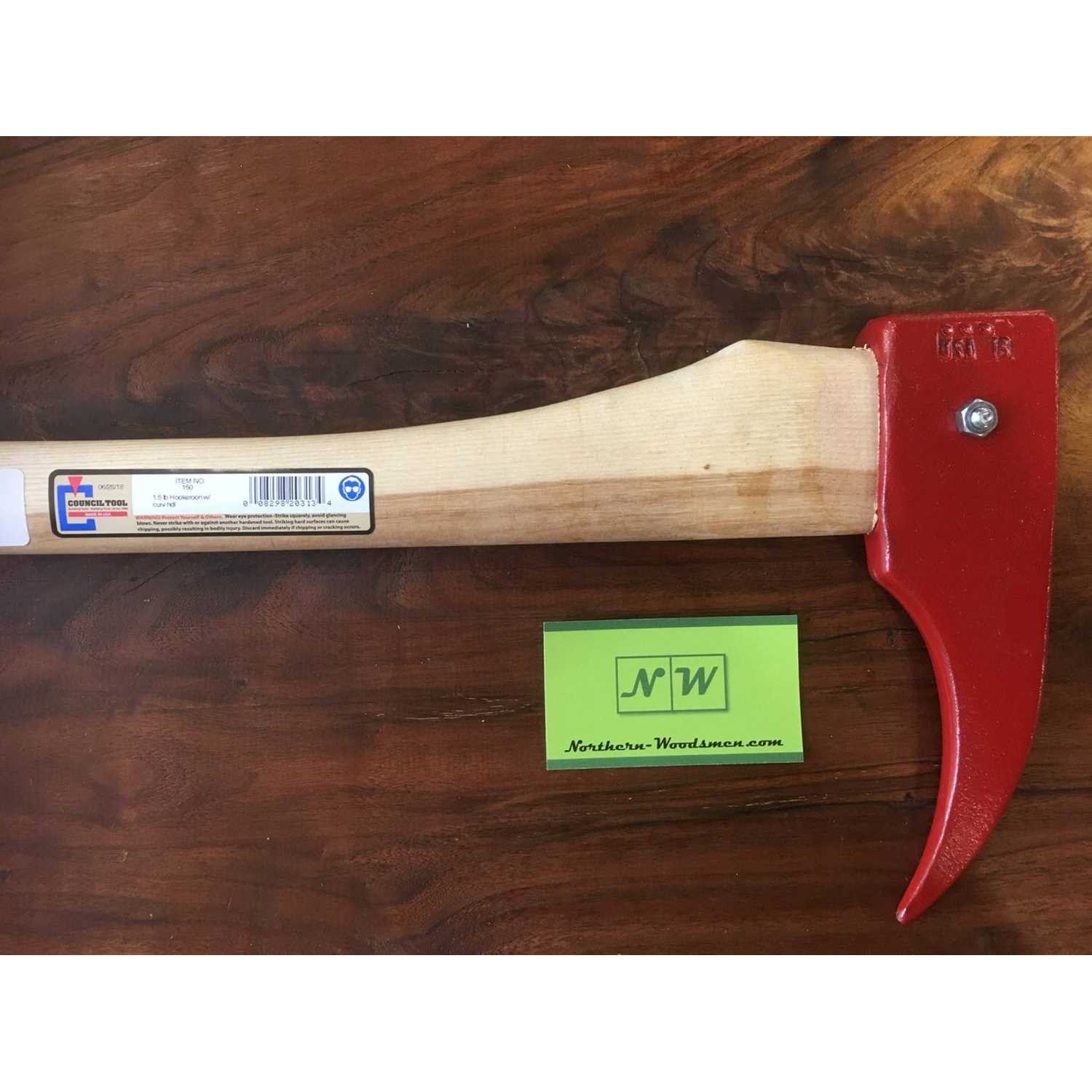 Axe head is hydraulically seated onto handle and secured with a serrated aluminum wedge. Used for handling logs and timber. Body coated with red enamel to deter rust. The assembled tool is The Council Hookaroon is an effective tool for moving logs and firewood that is indispensable in handling timber and firewood.