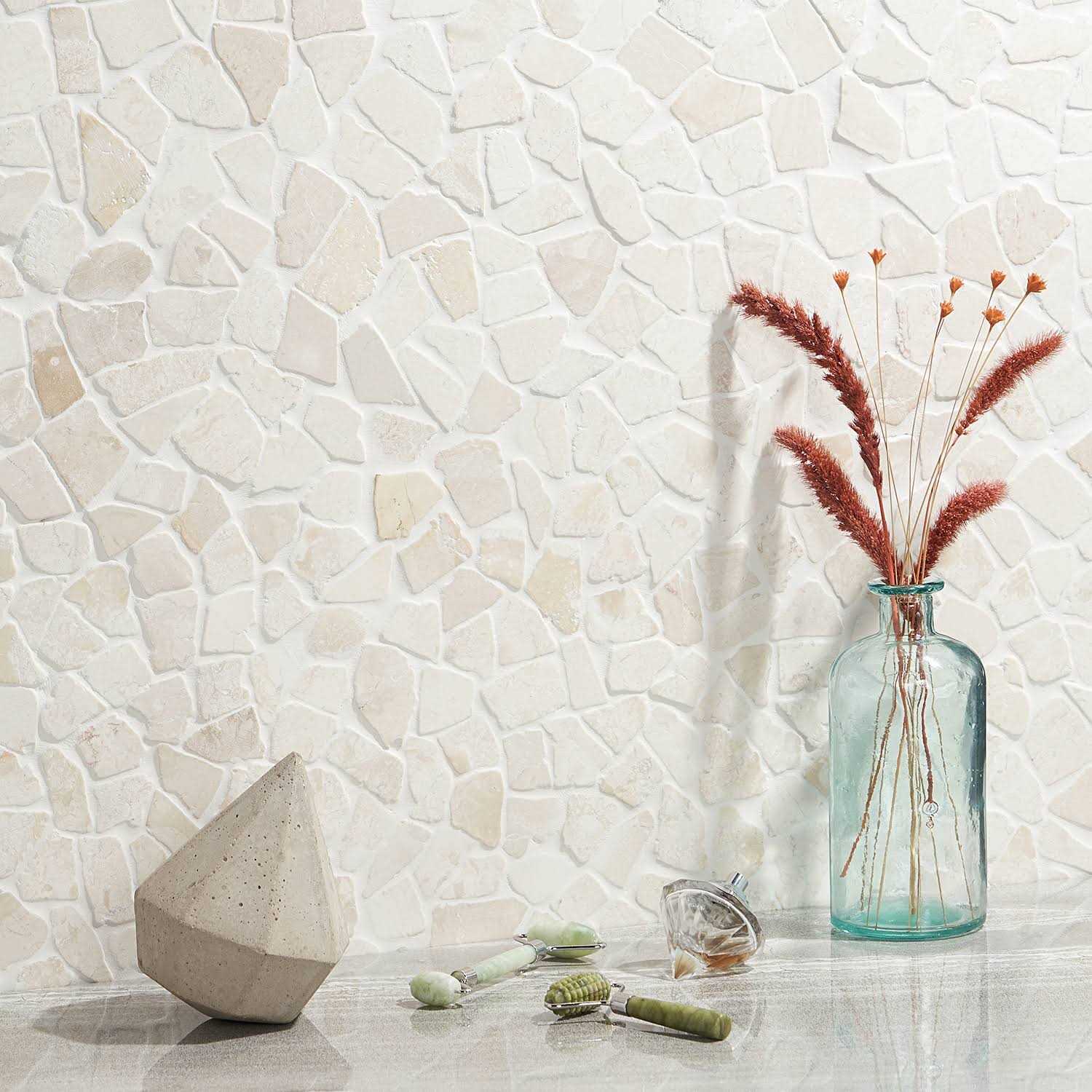 Heighten your indoor or outdoor designs with the countryside tumbled mosaic. This mosaic is made from irregular stones with a touchable texture. With its organic, au natural look, it’s perfect to use on shower floors, decks, or pools or anywhere you want to create an outdoorsy appearance.