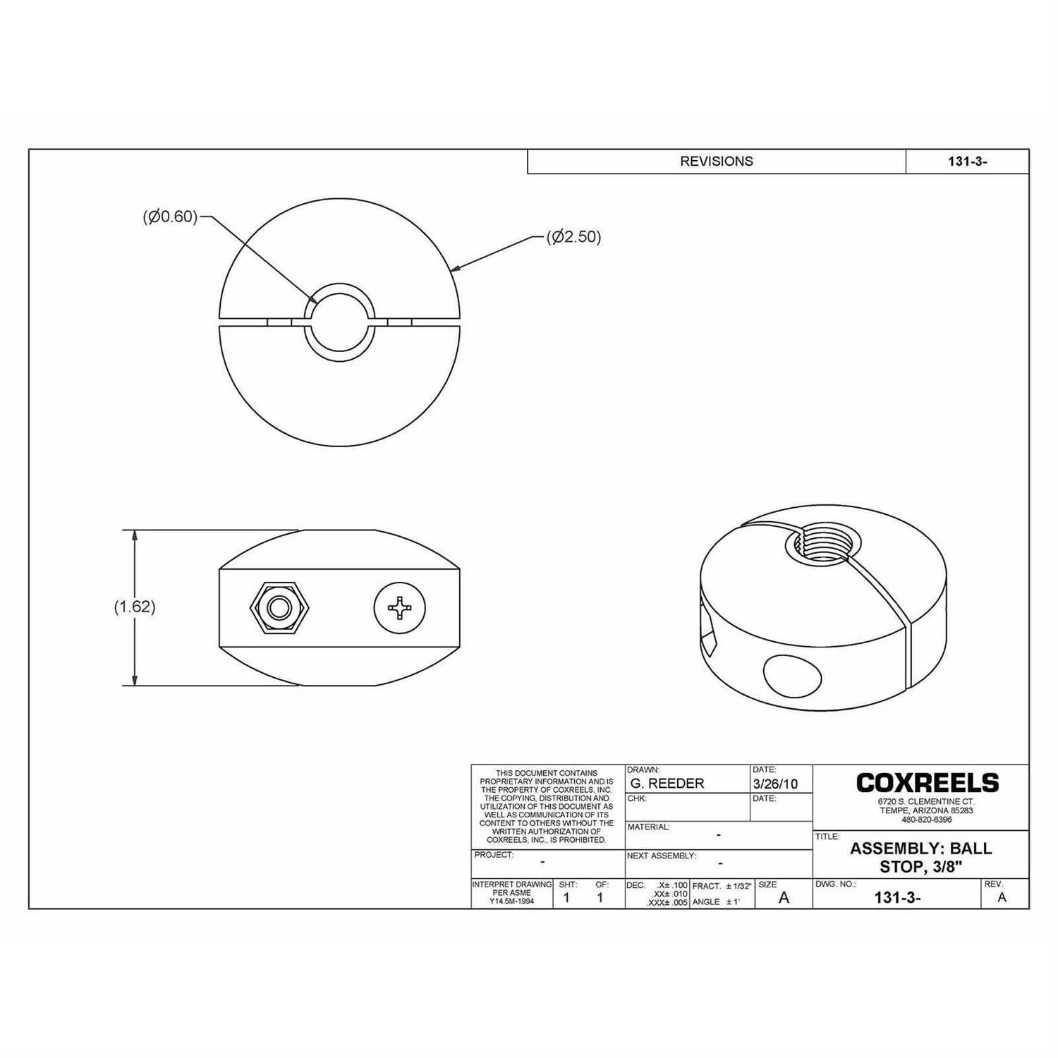 Coxreels 131-3 Ball Stop for Spring Driven Reel. Fits 3/8′ ID Hose.