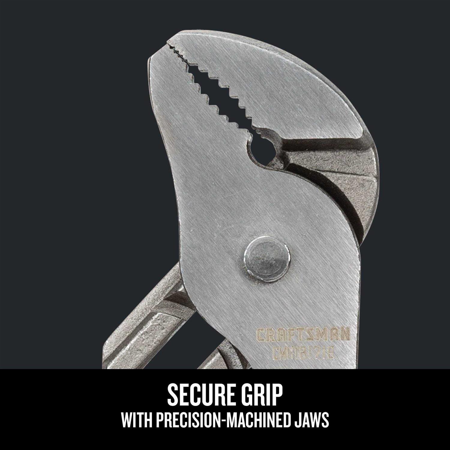 Tongue-and-Groove Pliers by Craftsman. Details:This 8-inch and 10-inch Groove Joint Pliers Set is made from drop-forged steel for strength and durability. The multi-zone, bi-material grips on CRAFTSMAN pliers set allow for dedicated comfort and secure grip zones. The precision machined jaws of chanel locks pliers are ideal for twisting, gripping, holding, and cutting a variety of shapes and sizes.
