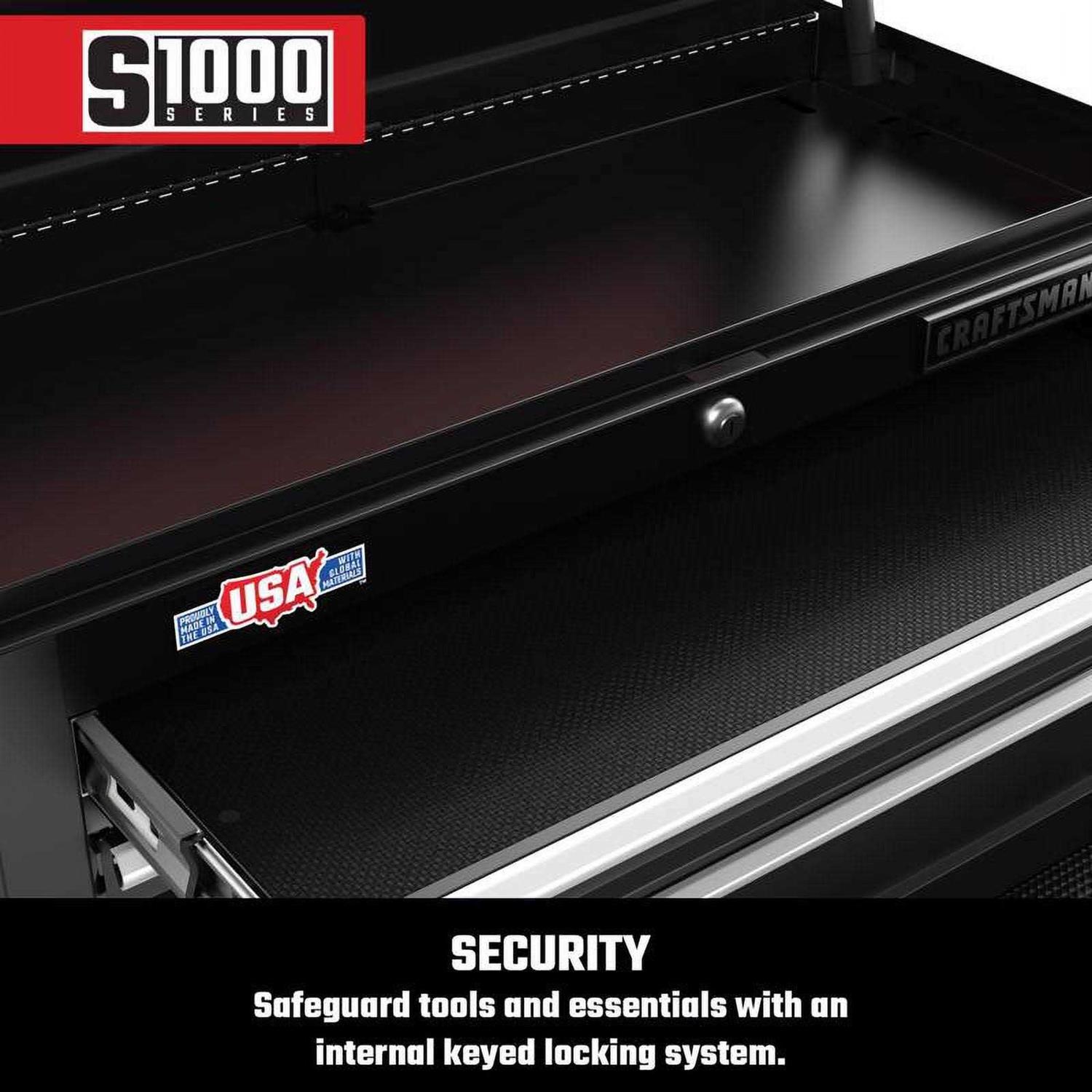 Keep your garage organized and ready for work with the Craftsman S1000 Series 5-Drawer Chest. This storage solution features sturdy construction, ball-bearing drawer slides and includes drawer liners. With 5 easy-open drawers and 3,589 cu. in. of internal space, this S1000 5-Drawer Chest provides the storage you need for a workshop you can take pride in.