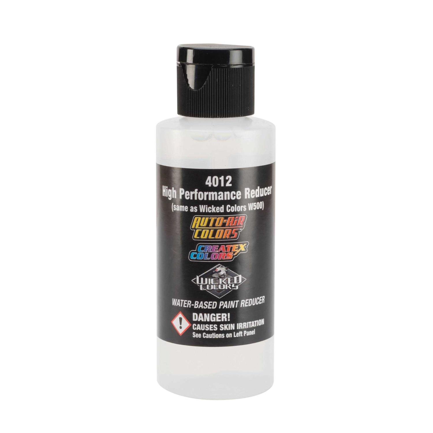Thin airbrush colors, increase transparency, and improve flow with waterbased Createx High Performance Reducer (also called Wicked Colors W500).