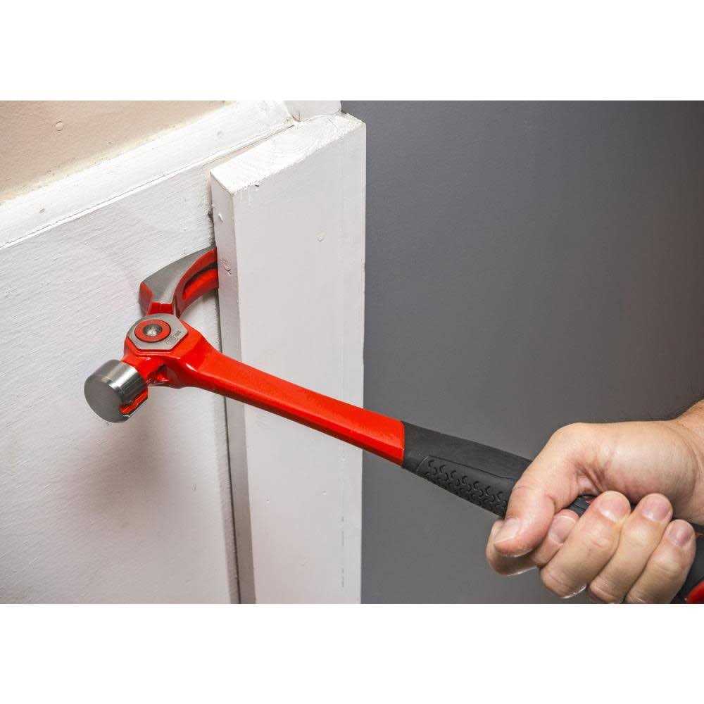 Extra large smooth striking face provides solid contact when driving nails or persuading boards/materials. Offering 4 unique positions for accessing and prying nails and boards with increased leverage. Magnetic nail starter holds nails securely under the hammer head for Quick and easy one hand nail starting.