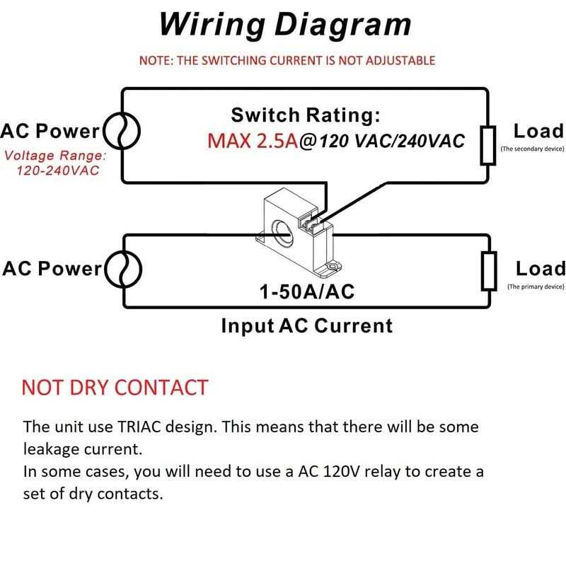 Current Sensors by CrocSee. Details:CrocSee AC Current Switch is designed for AC current monitoring, motor overload protection, automatic control system and other applications. This device senses a current draw of between 1amp and 50 amps and closes a set of contacts while AC current is passing through sensor. Main Specifications: Enclosure Dimensions(LxWxH): 88 x 25 x 50mm; Or approx. 3.46 x 0.98 x 1.97 inch Sensor Hole Diameter: 20mm (0.79 inch) Mounting Holes: 2x5mm holes spaced 76mm on base (2 x 0.19”holes spaced 3”on base) Voltage Range: 120-240VAC Switch Rating: 2. Disconnect and lock-out all power sources prior to installation. 2. The current switch has a rating of 2.5 Amps maximum. If the secondary device (which is conncted with the switch) draws more than 2.5 Amps, then you will need a separate high current relay. 3. A load must be applied across the NO switch to work. If no load is applied across the NO switch, these NO terminals will not close with correct operating…
