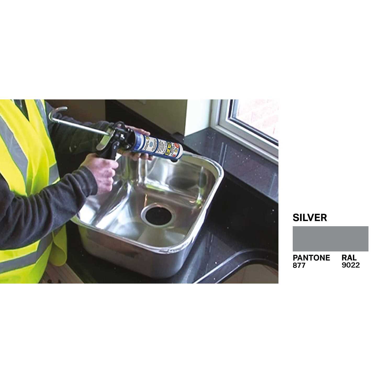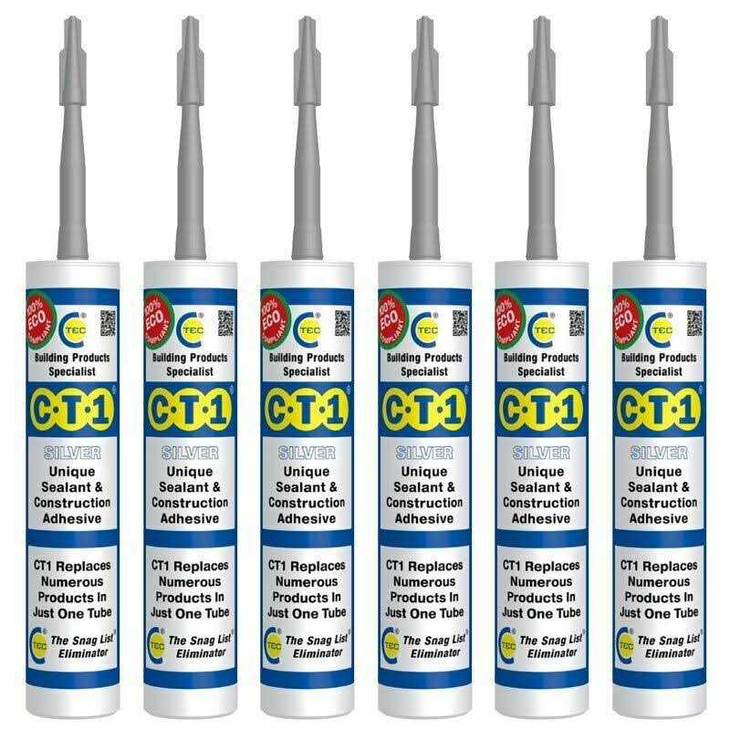 The CT1 Sealant silver utilises our unique TRIBRID Technology to provide an all-in-one solution to sealing and bonding in an exterior or interior setting. Stronger than a traditional hybrid polymer. Provides excellent colour retention, resistance to chemicals and is environmentally compliant. This sealant adhesive also offers resistance to vibrations and works well in wet or dry conditions. Perfect for use in your bathroom, marine and boating maintenance, accident emergency repairs, as a fish tank sealant, or kitchen sealant. Can be used outside or inside. Does not contain solvents, does not shrink and has unique flexibility. This sealant can also be painted as required. Successfully bond all metals, glass, mirrors, all woods, MDF, polystyrene, fiberglass, tiles, concrete, most stones (without staining), most synthetic materials, plastics (excluding PP, PE, and PTFE).