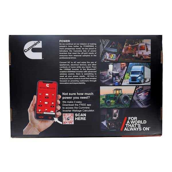 Transform your truck or vehicle 12 volt power into 110V AC power with this Cummins 5000W modified sine wave inverter. This powerful DC to AC 5000 watt power inverter is easy to use and offers reliable power in off-grid situations and multi-purpose charging. It is a 12v to 110v power inverter perfectly suited for your on-the-go lifestyle and designed for Cummins fans. Enjoy the conveniences of home while on the road with this wireless power inverter that supports AC devices rated up to 5000 watts delivering continuous power with a high surge capacity for devices that require up to 10000 watts to start. This Bluetooth enabled inverter offers advanced wireless control compatible with all Android and iOS smartphones. The free phone app lets you monitor and update the battery voltage or output power and product temperature. You can set up protections such as under voltage and overload at a distance. Power your battery inverter on and off using the phone app. Full cable kit included. 36-inch cables to attach directly to your vehicle battery to harness power for your microwave or TV and other appliances. A great gift for professional truckers and campers or anyone on the road.