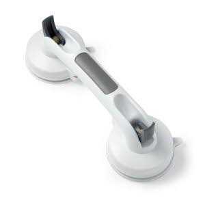Suction grab bar uses a vacuum seal to securely attach to the wall without the use of tools. Helps prevent slips and falls- No holes, screws or tools required- Installs easily on smooth surfaces- White with Grey Trim- From a smoke free, pet free place of business No holes, screws or tools required Installs easily on smooth surfaces White with Grey Trim From a smoke free, pet free place of business”