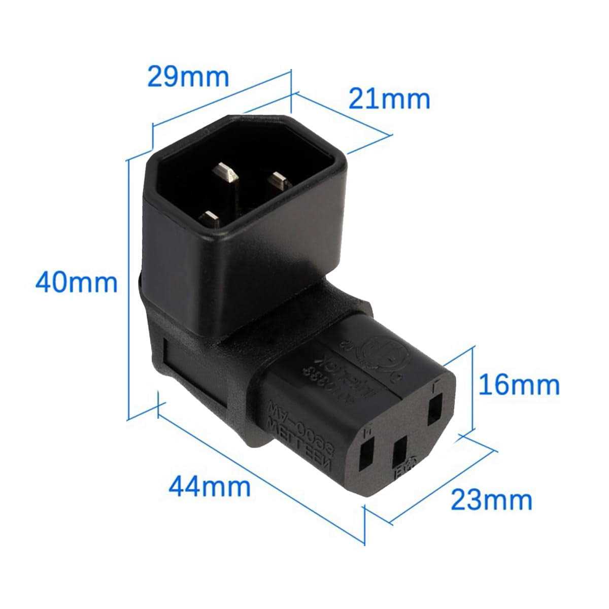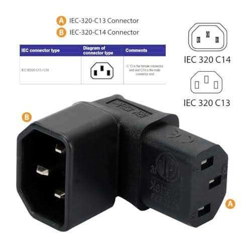 The plug type for this adapter is IEC 320 C14 to C13, featuring a 90-Degree Angle AC Converter design with an IEC 3-Pole Male to Female 90-Degree Angle Configuration. You’ll want to check your device to see which way the cable would exit when plugged in. It supports a maximum current of 10A and is compatible with a voltage of 250V, ensuring efficient power transfer for various electronic devices. The angled type Allowing you to connect it to a female port, even if space around the port is limited. Offering versatile compatibility, it is suitable for a wide range of electronic equipment that requires an IEC 320 C14 to C13 connection, making it a flexible solution for various setups. The plug type for this adapter is IEC 320 C14 to C13, featuring a 90-Degree Angle AC Converter design with an IEC 3-Pole Male to Female 90-Degree Angle Configuration. You’ll want to check your device to see which way the cable would exit when plugged in. It supports a maximum current of 10A and is compatible with a voltage of 250V, ensuring efficient power transfer for various electronic devices. The angled type Allowing you to connect it to a female port, even if space around the port is limited. Offering versatile compatibility, it is suitable for a wide range of electronic equipment that requires an IEC 320 C14 to C13 connection, making it a flexible solution for various setups.