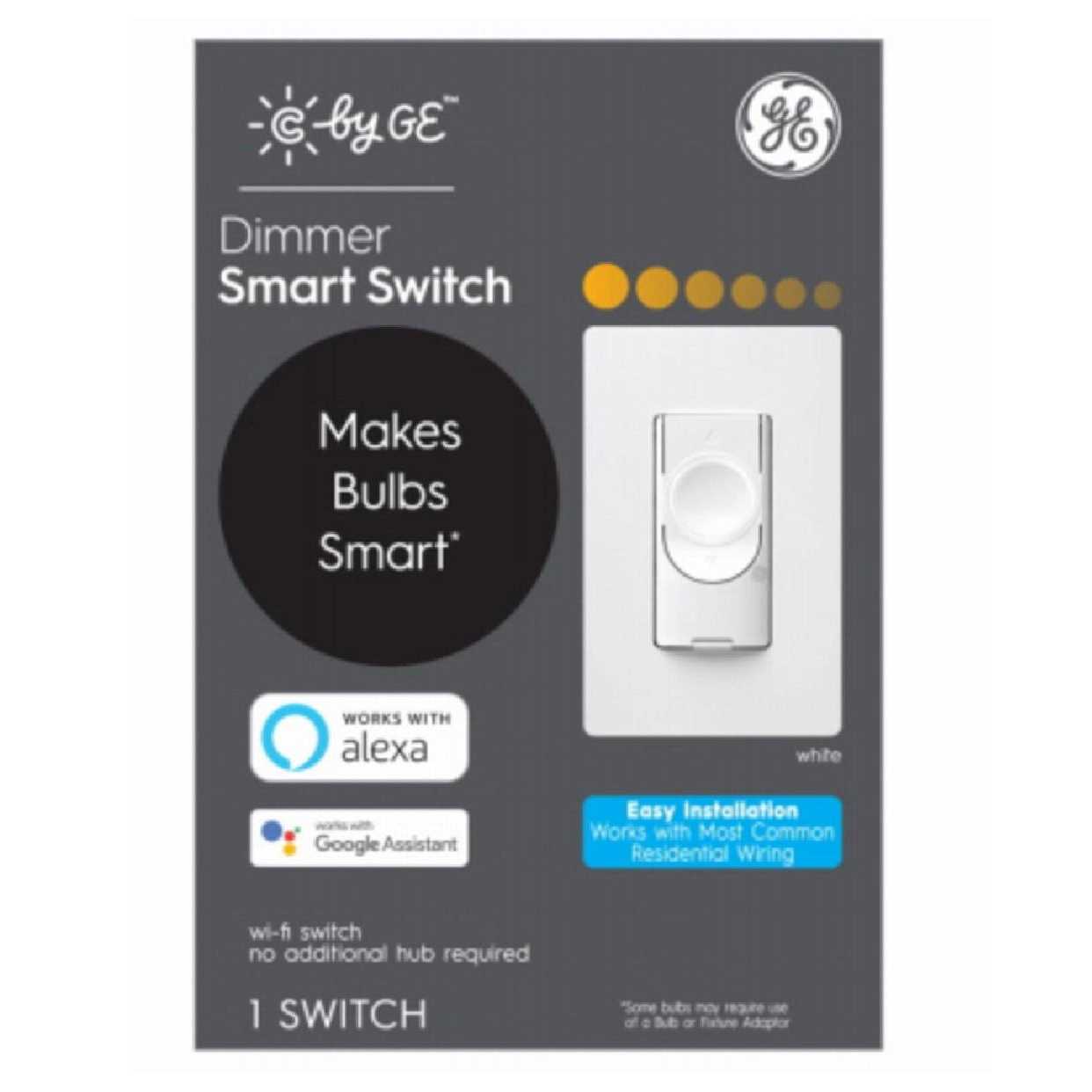 Introducing the C By Ge Smart Switch-Dimmer (93120079) – the perfect addition to your smart home. With this switch, you can control your lights through a mobile touch app or voice assistant, bringing convenience and comfort to every corner of your house. This smart switch not only works with traditional bulbs but also enhances their functionality to include out-of-home control, scheduling, and scene setting. Even when the power is turned off at the switch, your smart bulbs will remain connected and ready to respond to voice commands and provide out of home control. Pair the Smart Switch with C by GE Smart Bulbs in other fixtures and wirelessly control all your lights from one wall switch. You can even connect multiple switches without the need for a travel wire, allowing you to control the same light fixture from different switches, even if they are on different circuits. Installation is a breeze with simple DIY setup that works with most common residential wiring. Plus, there’s no need for a hub as the Smart Switch can directly connect to Google Home and Amazon Alexa devices. With features like brightness adjustment, scheduling, whole room lighting control, and compatibility with Google Assistant and Amazon Alexa, this smart switch is perfect for everyone in the house. Its illuminated light ring makes it easy to locate in the dark, and the included face plate fits standard paddle-style face plates. Upgrade your home with the C By Ge Smart Switch-Dimmer (93120079) and experience the convenience and control of a smart home today.