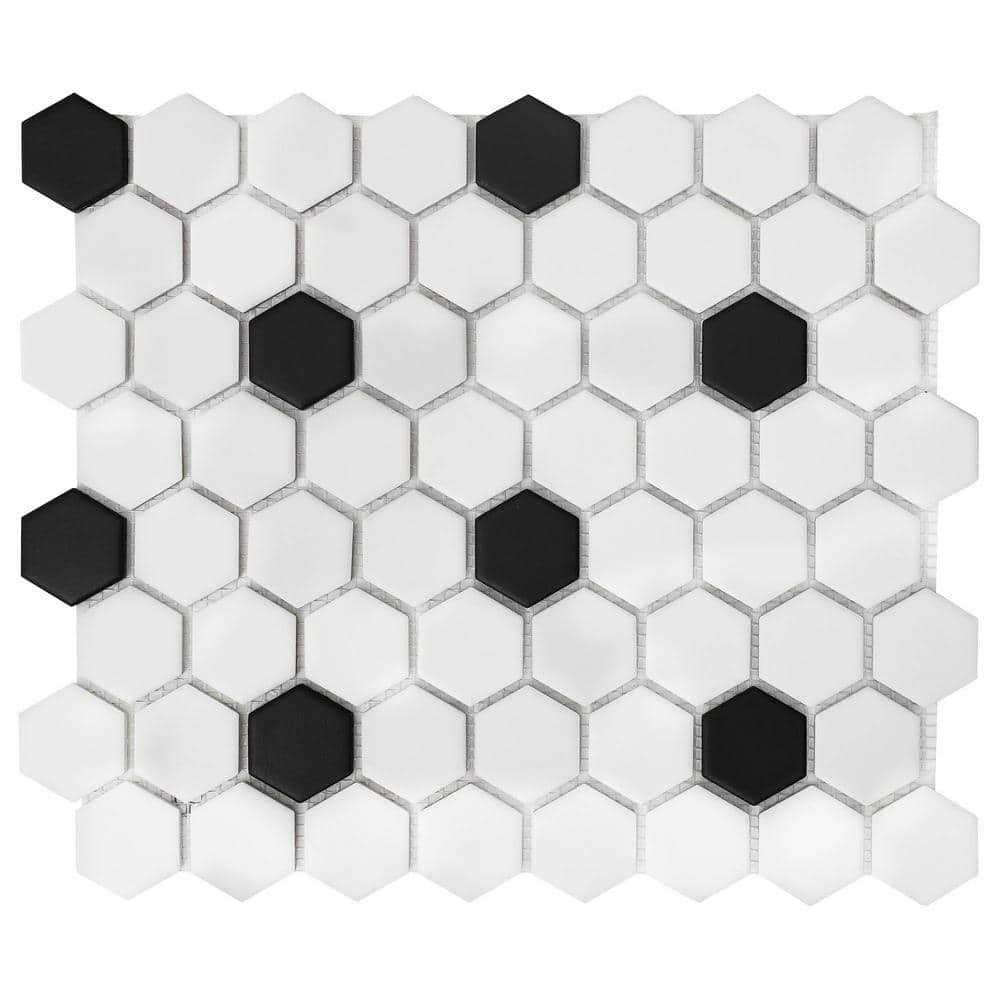 Daltile Restore Matte Black and White 14 in. x 11 in. Glazed Ceramic Hexagon Mosaic Tile (10 Sq. ft./Case)