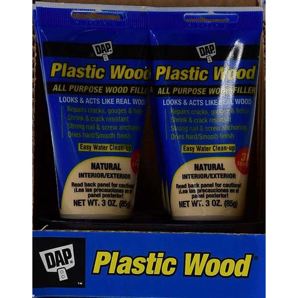 Dap Plastic Wood is a high quality, latex-based wood filler formulated to match various wood finishes from a natural pine to dark walnut and several shades in between, including white. DAP’s Plastic Wood is the ideal choice whenever you need to repair cracks, gouges, holes and other surface defects on furniture, woodwork, molding, cabinets, paneling, plywood, windows, doors and even painted surfaces. Looks and Acts Like Real Wood. Repairs cracks, gouges and holes. When dry, it can be sanded, cut, planed, drilled, nailed, screwed, stained, and painted. Shrink and crack resistant. Strong nail and screw anchoring. Dries hard with a smooth finish. Indoor/ outdoor use.