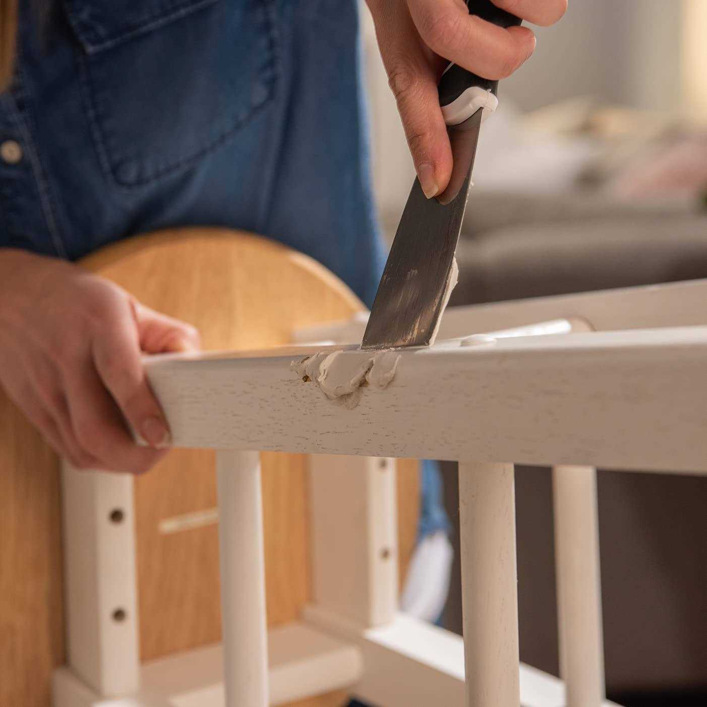 - Thin slightly with water to create a grain filler to fill natural wood pores, providing a tabletop finish
