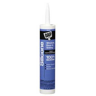 DAP 100% silicone window, door and siding sealant is an all-purpose, one component, acetoxy cure sealant ideal for indoor/outdoor use. It provides a watertight, flexible seal that won’t crack, crumble or shrink. Once cured, it is unaffected by temperature extremes (-40 to 400 deg F).
