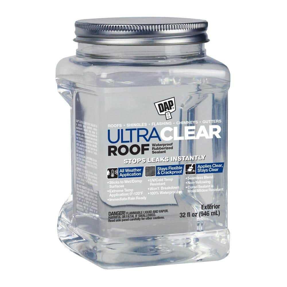 Dap ultra clear roof is a crystal clear, elastomeric rubberized sealant that stops and prevents minor roof leaks. It creates an invisible, ultra waterproof seal around roof fixtures. Also around penetrations to keep out water, air and moisture, preventing damage. Color: Crystal-clear.