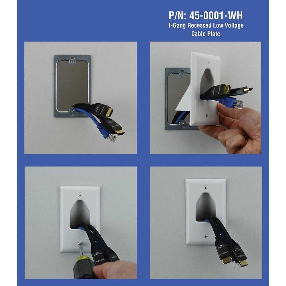 Need a high quality 1-Gang Recessed Low Voltage Cable Plate, White? Not only is the qualiy great for 1-Gang Recessed Low Voltage Cable Plate, White but also the best price. Some Features of 1-Gang Recessed Low Voltage Cable Plate, WhiteThis white single gang wall plate features a recessed pass through for routing low voltage cables into the wall for a clean professional installation every time. Easily pass any audio/video cable into and/or through the wall. From wall mounted HDTV’s to shelf mounted security DVRs and inwall speakers these simple plates allow for easy clean routing of cables in many situations including cramped environments to other locations. The plate can be installed in both directions to facilitate directional needs. Designed to work with part # 3031-11110.