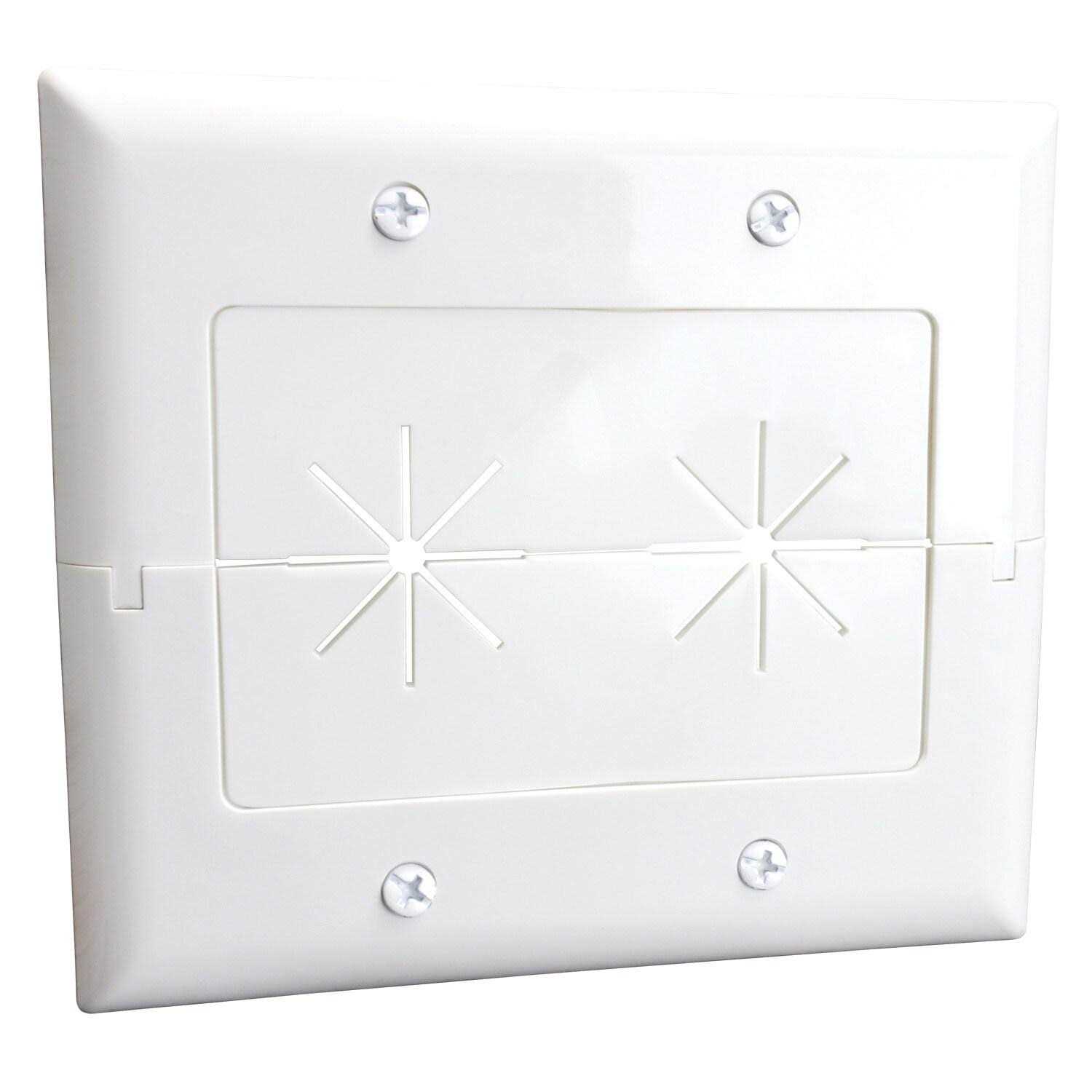 Ready to install your low-voltage cables behind your TV so they aren’t seen? DataComm Electronics’ 2-Gang Split Plate with Flexible Opening is what you need. It is used to install low voltage cables behind your HDTV, amplifier, or other audio/video devices. This White Split Plate is designed to be installed onto a low-voltage mounting bracket (sold separately) that is installed into the wall.