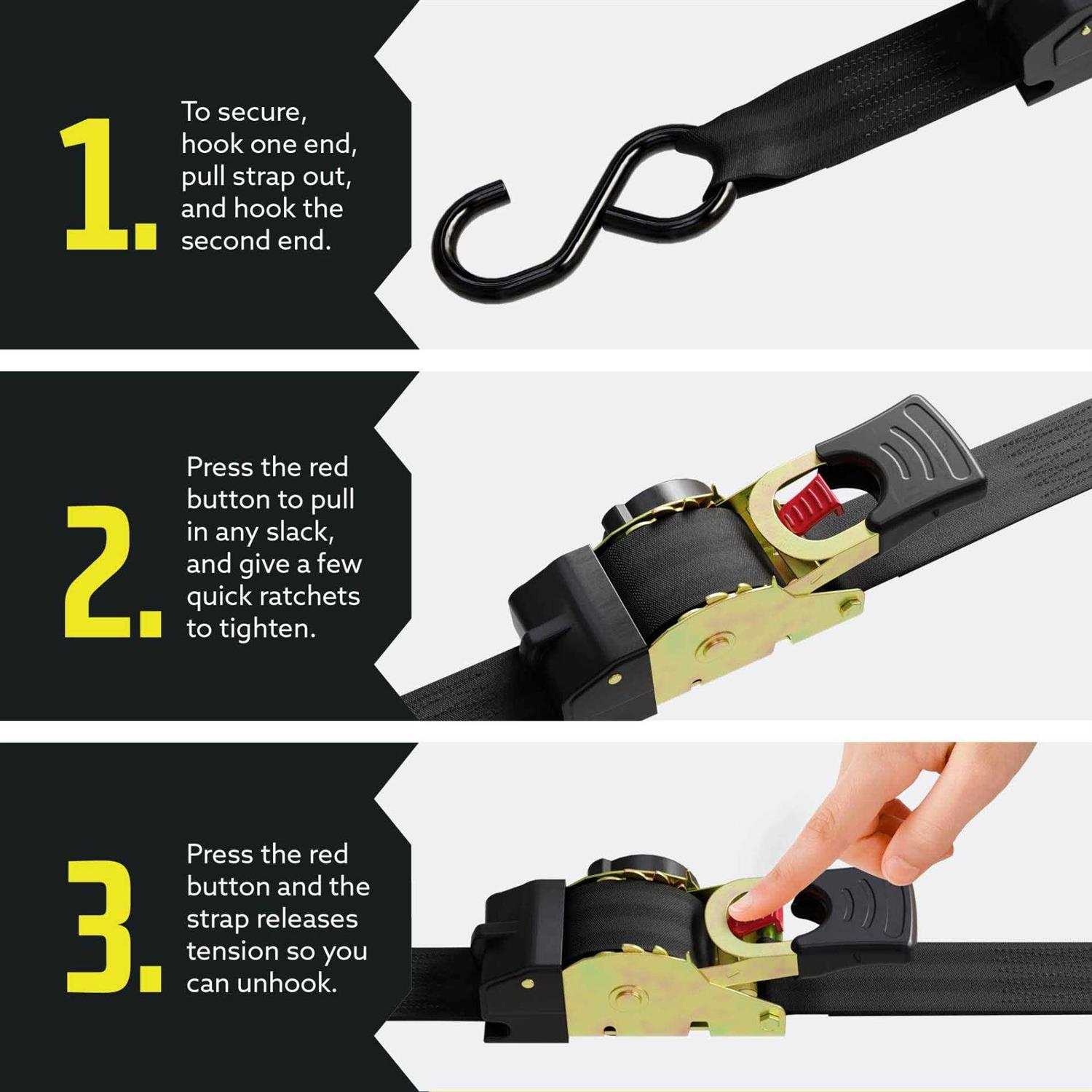 DC Cargo Mall 4 Auto Retract Ratchet Straps | 1″ x 6′ Retractable Self-Contained Compact