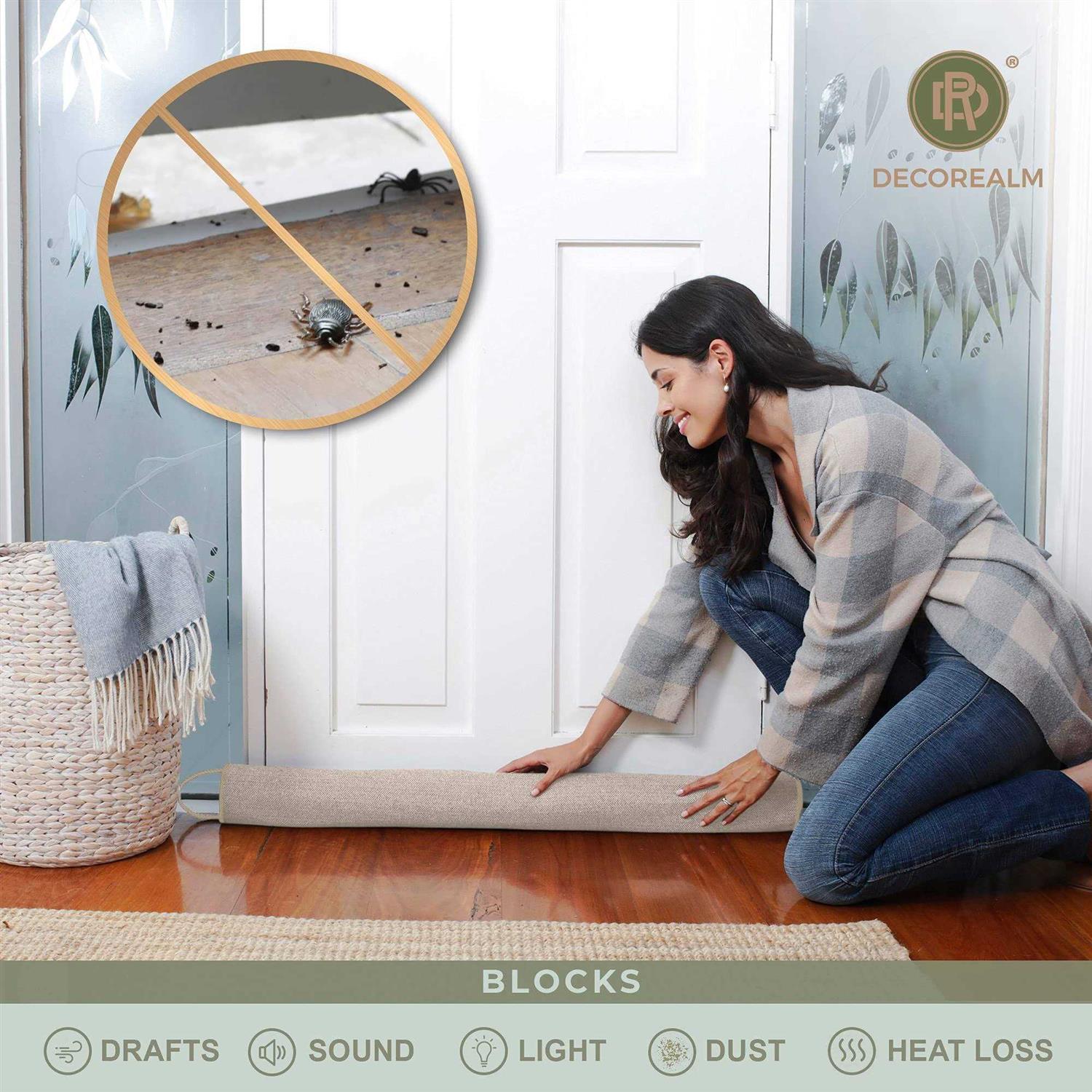 DECOREALM: Where Fashion and Functionality Meet Does cold air drift through the cracks of your doors, windows or fireplace on chilly days and nights? Or maybe air conditioning is wasted as air escapes through those cracks in the summer? Does noise or light sneak under your bedroom door, making it difficult to sleep? Whatever the issue, this door crack blocker and window draft stopper is a stylish and effective solution. Quality Design for Your Peace of Min