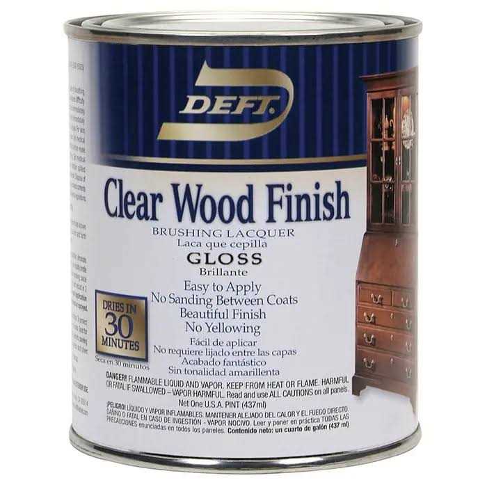This clear wood finish brushing lacquer is 100-Percent nitrocellulose brushing lacquer for most interior wood and metal surfaces. Fast 2-hour dry and self-leveling. Easy to application provide professional results. Sanding between coats is not necessary, cwf melts into itself. This crystal clear lacquer is non-yellowing. Seals and finishes interior wood furniture, cabinets, paneling, bar tops, and crafts. Approximate coverage 400 square feet per gallon. Available in satin finish and 1-quart can.