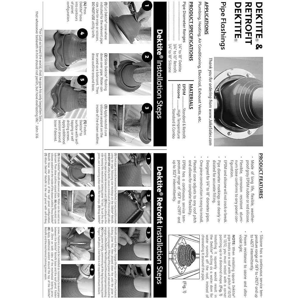 Dektite Premium #4 Red Silicone Metal Roof Pipe Flashing, High Temp, Square Base, Pipe OD 3″ to 7″