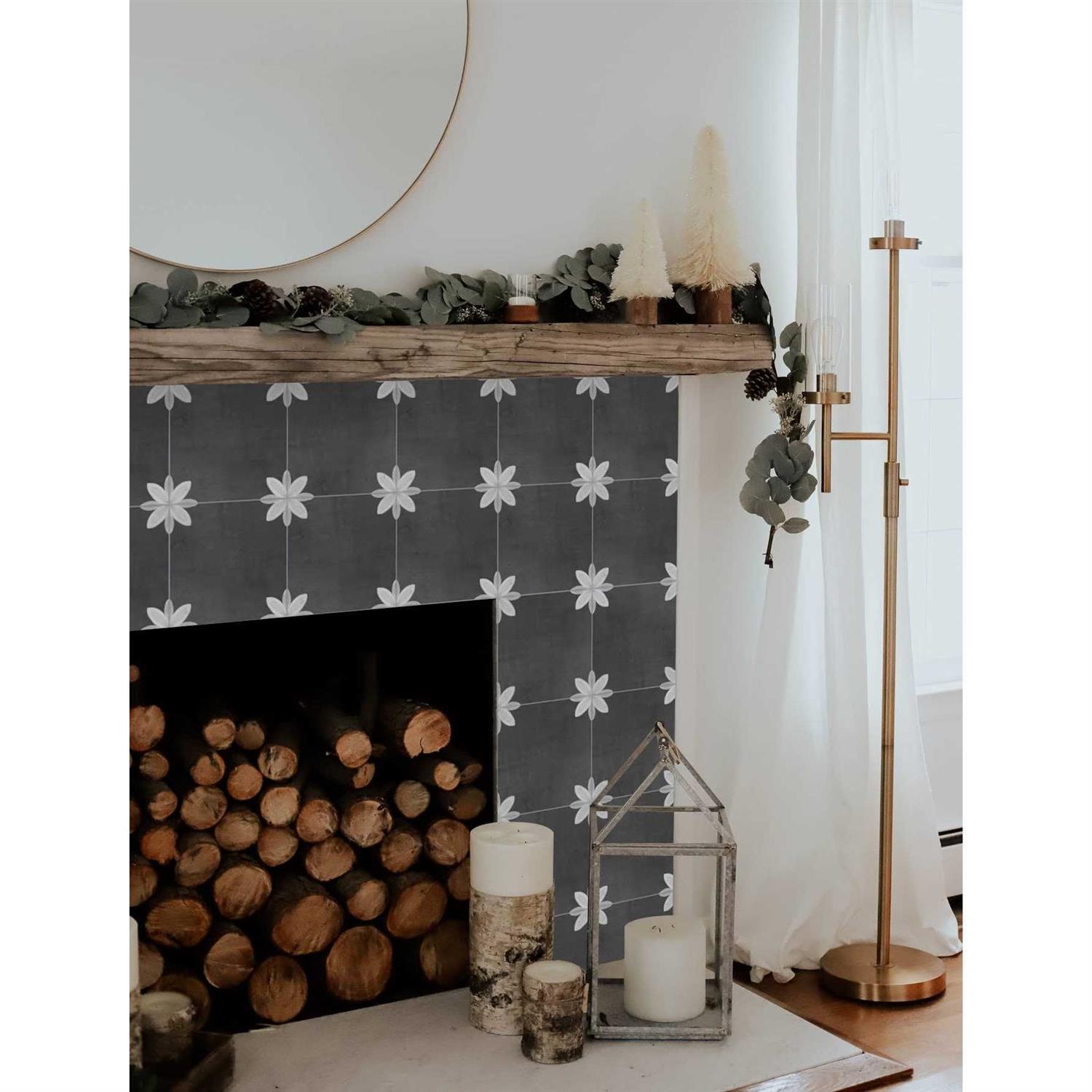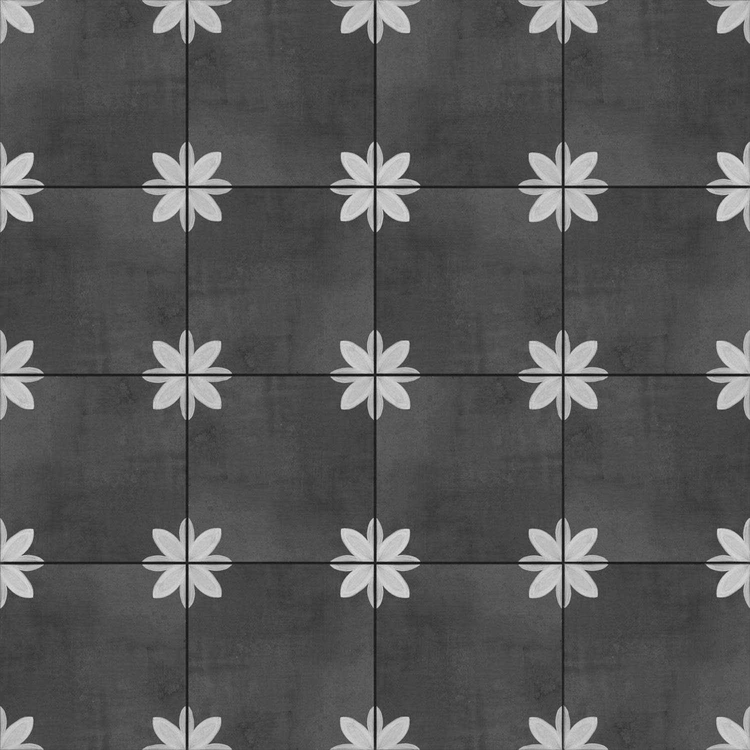 della Torre Fiona Matte Porcelain Patterned Floor & Wall Tile – Black – 8 in