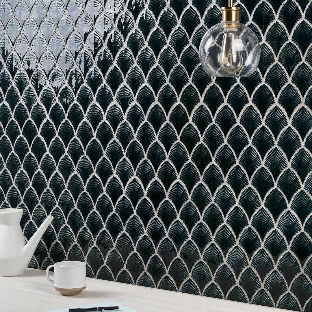 Ivy Hill Tile Delphi Midnight Blue 9.05 in. x 12.79 in. Polished Glass Fishscale Mosaic Wall Tile (0.8 Sq. ft./Each)