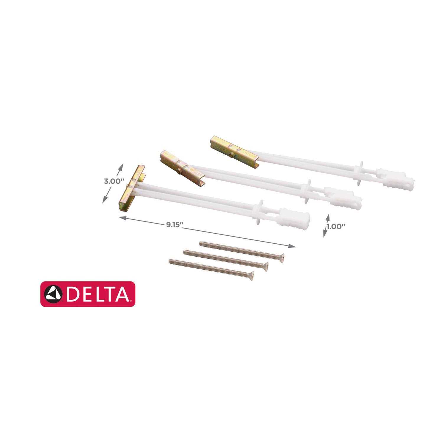 The Delta grab bar anchor for non-stud mount featuring the Snap Toggle by Toggler helps you install a grab or assist bar when you can only secure one end of the bar into a stud. The Delta grab bar anchor requires only a 1/2 inch diameter hole for installation and pre-installs without a bolt for easier installation. The snap toggle heavy-duty wall anchor used for the Delta grab bar anchor features a patented strap design that would not break prematurely adjusts more precisely and will snap off flush against the wall.