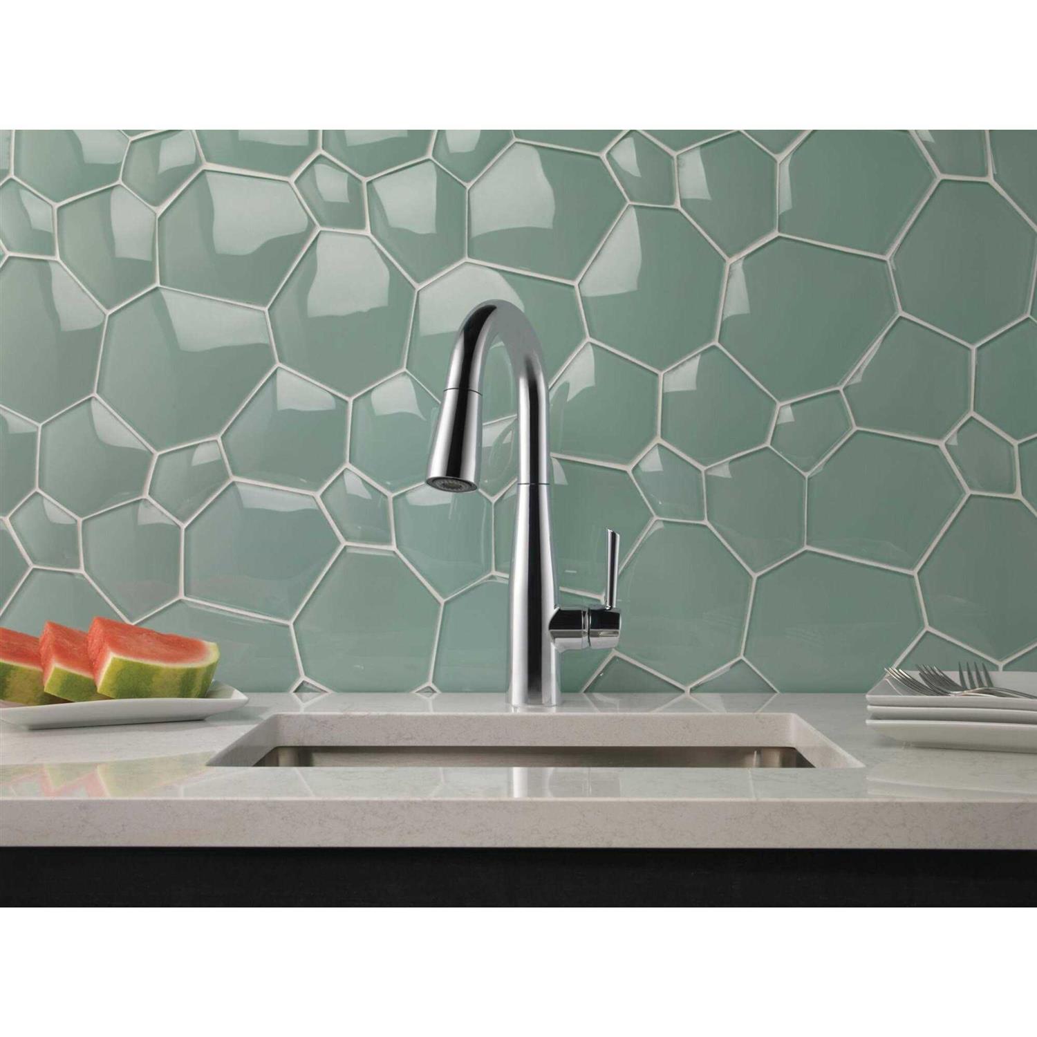 This Essa Single-Handle Bar Faucet in Chrome with MagnaTite Docking features a soft contemporary take on a euro design with subtle detailing accents that allow the faucet to blend with contemporary and transitional design. The pull-down spray wand comes free with a gentle tug and gives you total flexibility. The hose extends and retracts without friction points, fed by gravity. As you raise the wand to dock it, the magnet embedded in the spout pulls the wand precisely into place. So, unlike other pull-downs that tend to droop over time, MagnaTite keeps your pull-down faucet looking picture-perfect. Delta’s exclusive DIAMOND Seal Technology uses a valve with a tough diamond coating. InnoFlex PEX waterways keep water inside the faucet out of contact with potential metal contaminants. This powerful combination brings you a faucet built to last up to five million uses. Only Delta faucets are equipped with Touch-Clean soft, rubber nubbins that allow you to easily wipe away calcium and lime build-up with the touch of a finger.