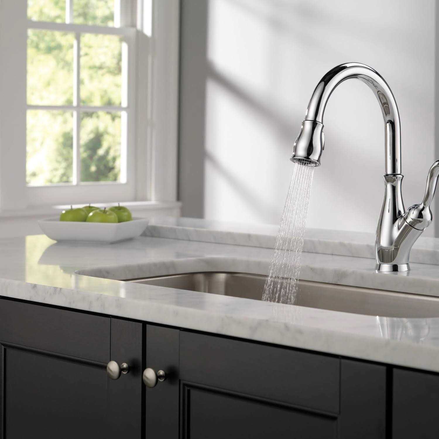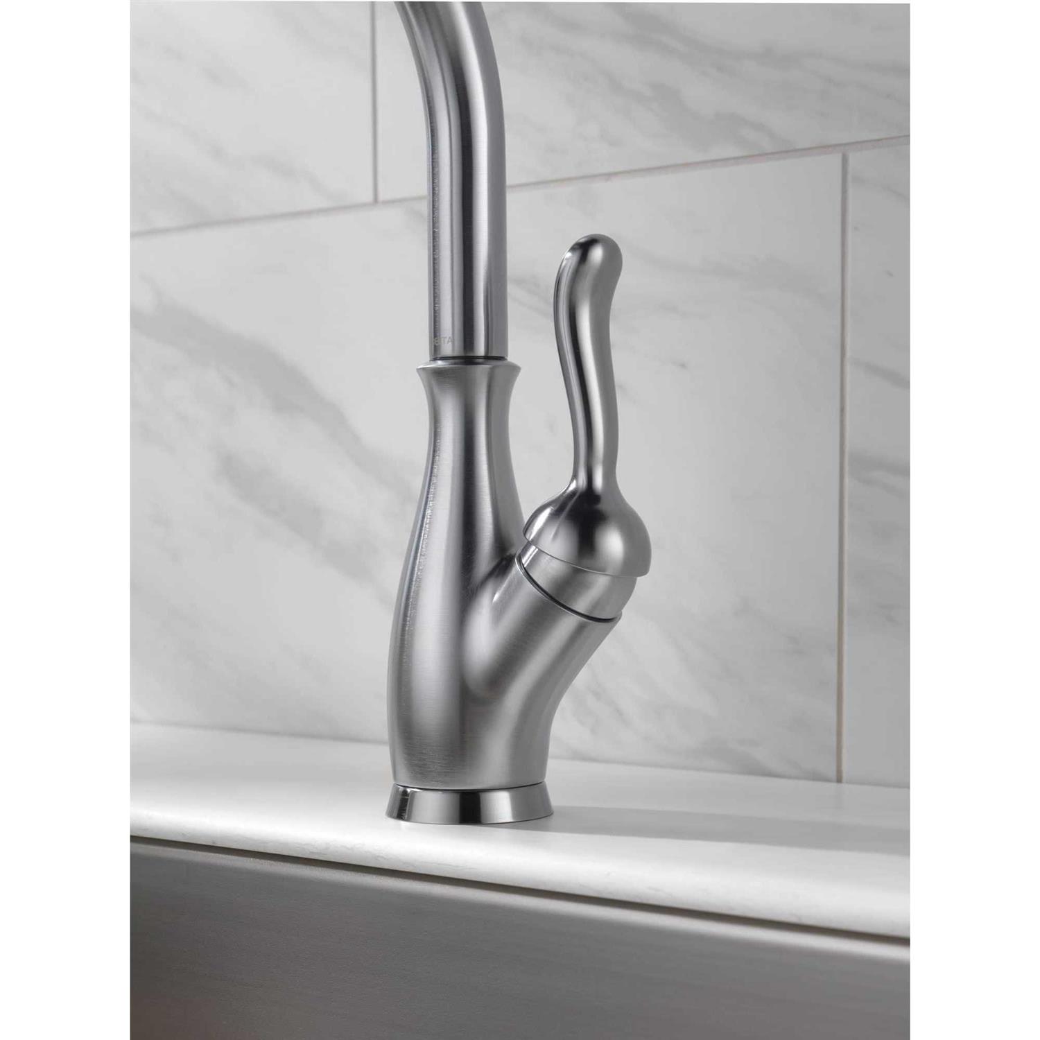 Bar/prep faucets go beyond the kitchen to butler’s pantries morning kitchens and more. With Leland traditional styling and modern functionality come together in dramatic fashion for a timeless look. The Delta-exclusive MagnaTite docking system keeps the spray wand securely in place for picture-perfect grace. Put water right at hand. Nobody offers a wider range of pull-out and pull-down kitchen faucets. Delta’s exclusive Diamond Seal Technology uses a valve with a tough Diamond coating to bring you a faucet built to last up to five million uses. Plus it keeps water inside the faucet out of contact with potential metal contaminants. Who knew a faucet could be just as beautiful on the inside?