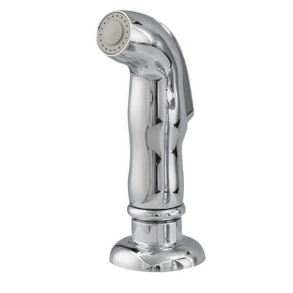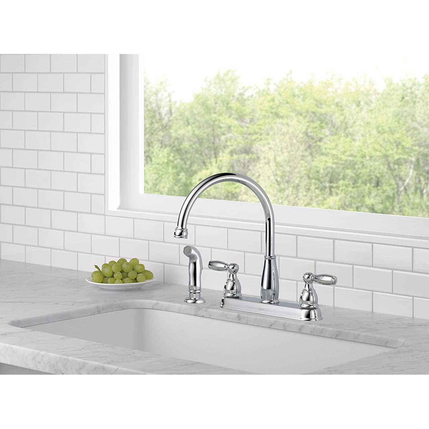 The Foundations 2-Handle Side Spray Kitchen Faucet in Chrome offers beauty and function. It has a 2-handle design for precise adjustment of hot and cold water. It’s ADA-compliant, and easy for every family member and guest to use.