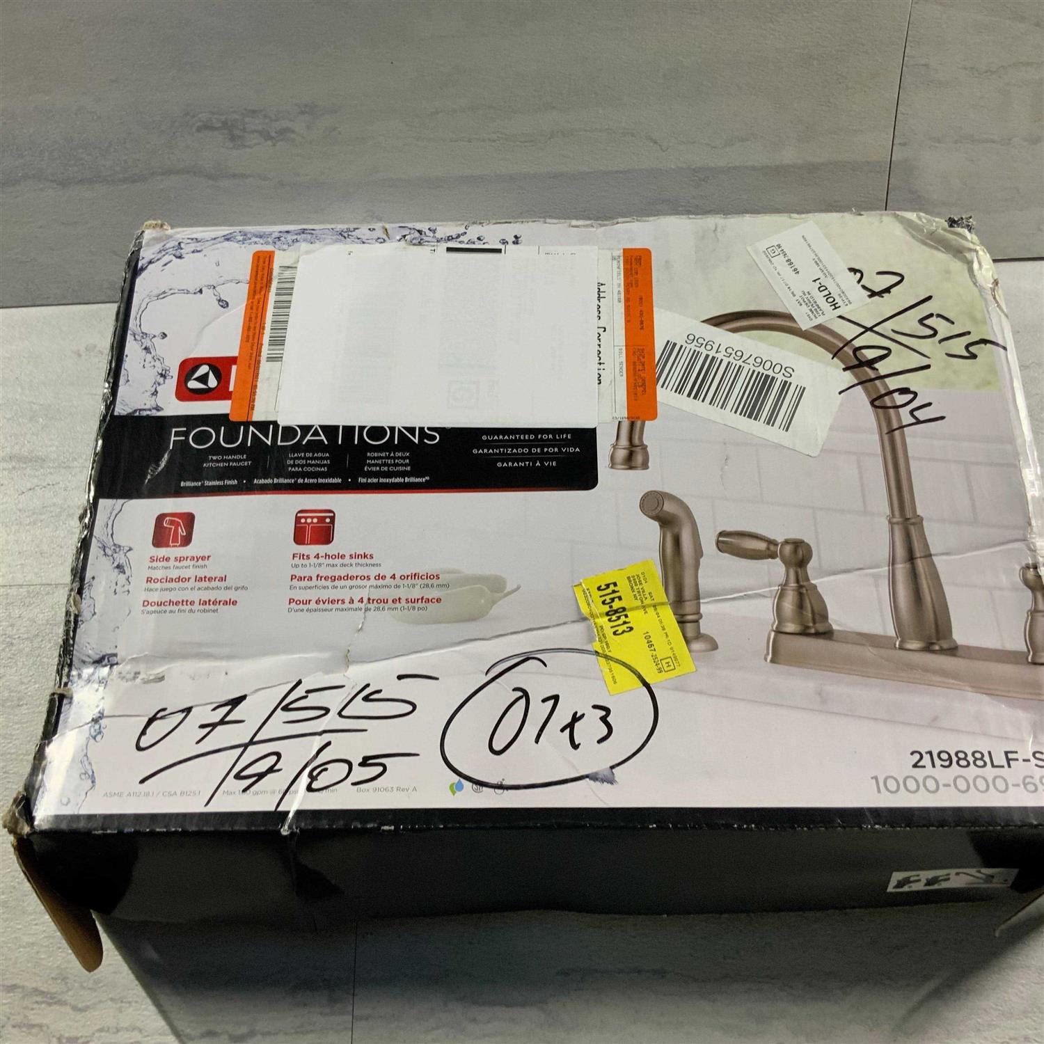 The Foundations 2-Handle Side Spray Kitchen Faucet in Stainless offers beauty and function. It has a 2-handle design for precise adjustment of hot and cold water. It’s ADA-compliant and easy for every family member and guest to use.
