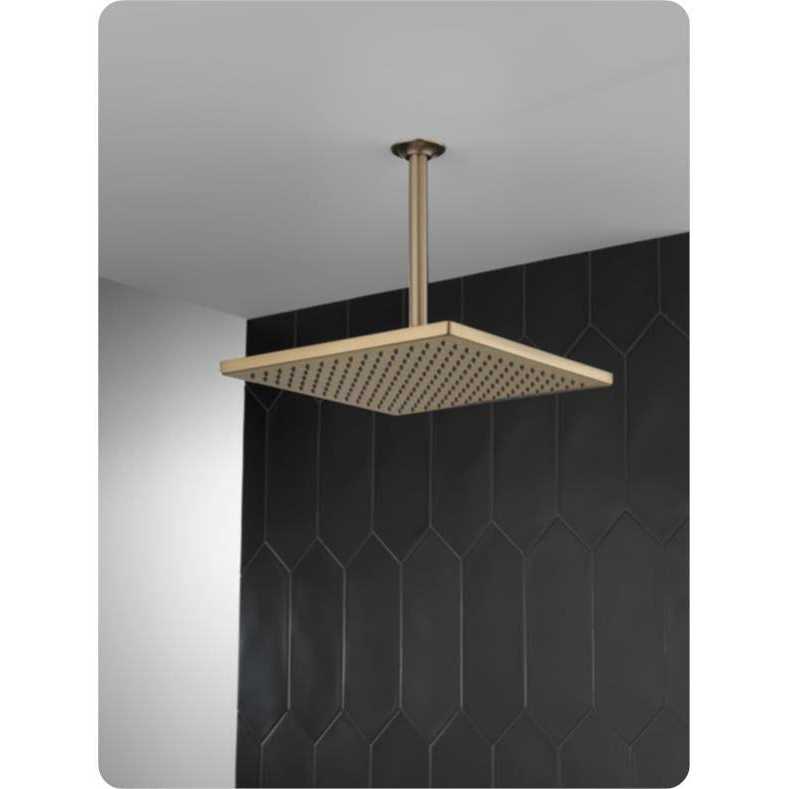 Designed to look like new for life, Brilliance finishes are developed using a proprietary process that creates a durable, long-lasting finish that is guaranteed not to corrode, tarnish or discolor. Take the chill out of contemporary with the eloquent warmth of Champagne Bronze in your bath. This vibrant, gold finish provides a vivid splash of contrast to your space for a look that’s simultaneously modern and nimble, able to pair elegantly with traditional, transitional and contemporary dcor. While other products may gather unsightly mineral build-up over time, Delta soft rubber Touch-Clean spray holes allow any mineral residue to simply be wiped away for an instantly refreshed look with no need for soaking or the aid of chemical cleaners. Easy to install. Shower arm and flange sold separately. For use with ceiling-mounted or extended wall-mounted shower arm applications. Metal ball connector for durability. Ball connector swivel angle is 36 Degrees (18 per side).