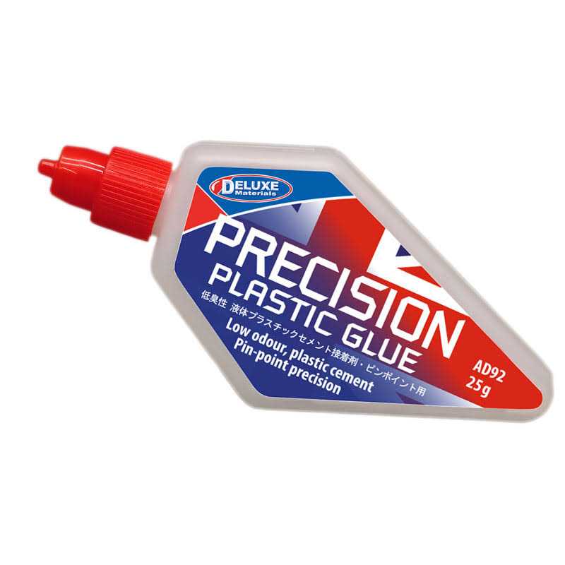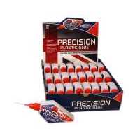 Precision Plastic Glue .88ozLow odor, liquid plastic cement with pin- point applicator. Hazard- free, non-toxic, plastic cement with a needle applicator. The glue is designed to be easy to apply, and with a 10 second working time for positional adjustment is ideal for all types of styrene plastic kits. Furthermore it is chemically engineered to resist needle clogging and not thicken in use. Precision Plastic Glue is packed in an easy to hold, clear plastic bottle for glue level visibility and an integrated detachable needle for safety.