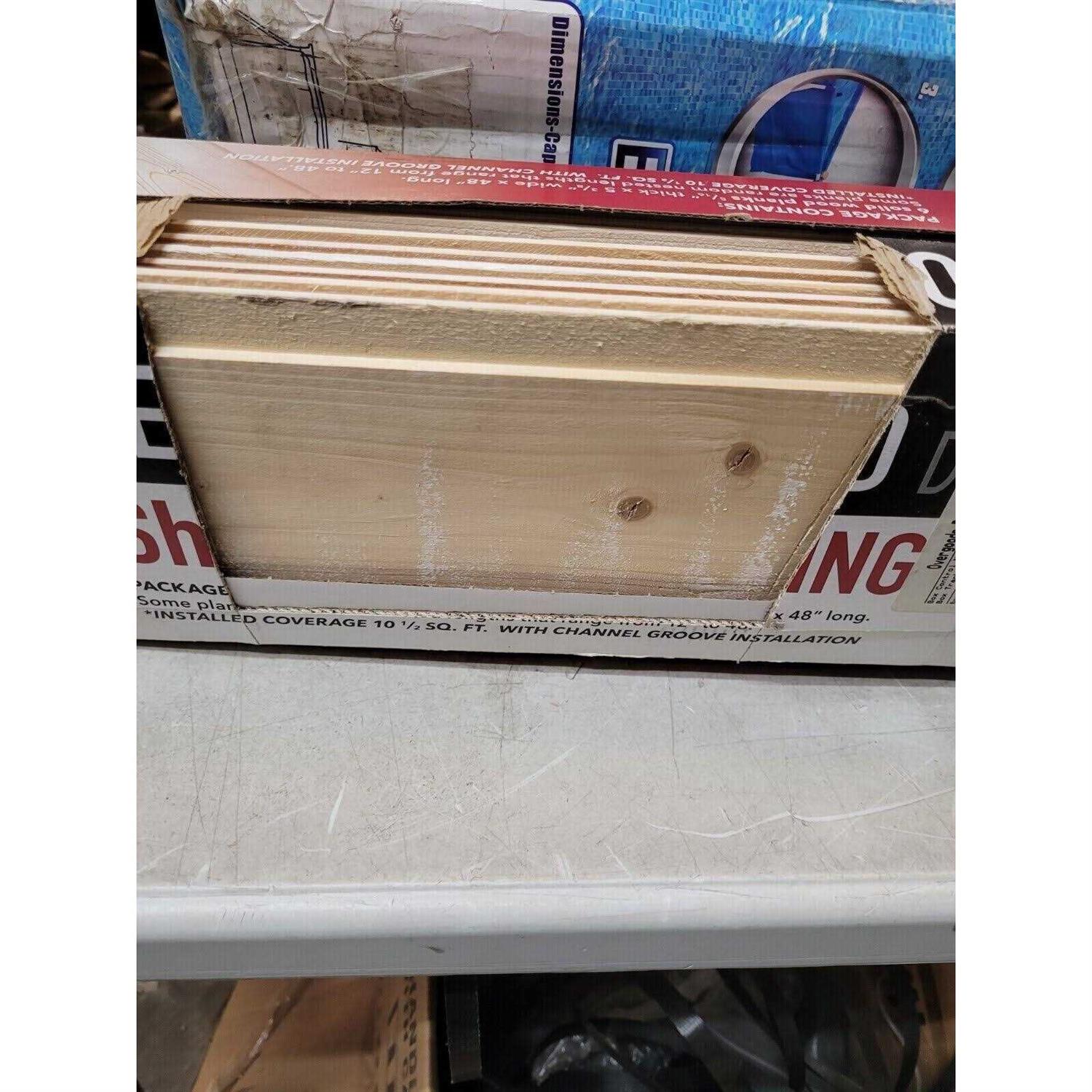This interior solid real wood planking is easy to install. Install on walls, ceilings, and DIY projects. When installing in high moisture areas it is recommended that you seal the product. Kiln dried to reduce cupping and shrinking. Solid pine/spruce wood, nested lengths up to 4 ft. Versatile shiplap wood can be installed in 3 different methods; channel groove, flush or overlap. Channel groove installation provides 10.5 Sq ft of coverage. Flush installation provides 9.5 Sq ft of coverage. Overlap installation provides 8.5 Sq ft of coverage.