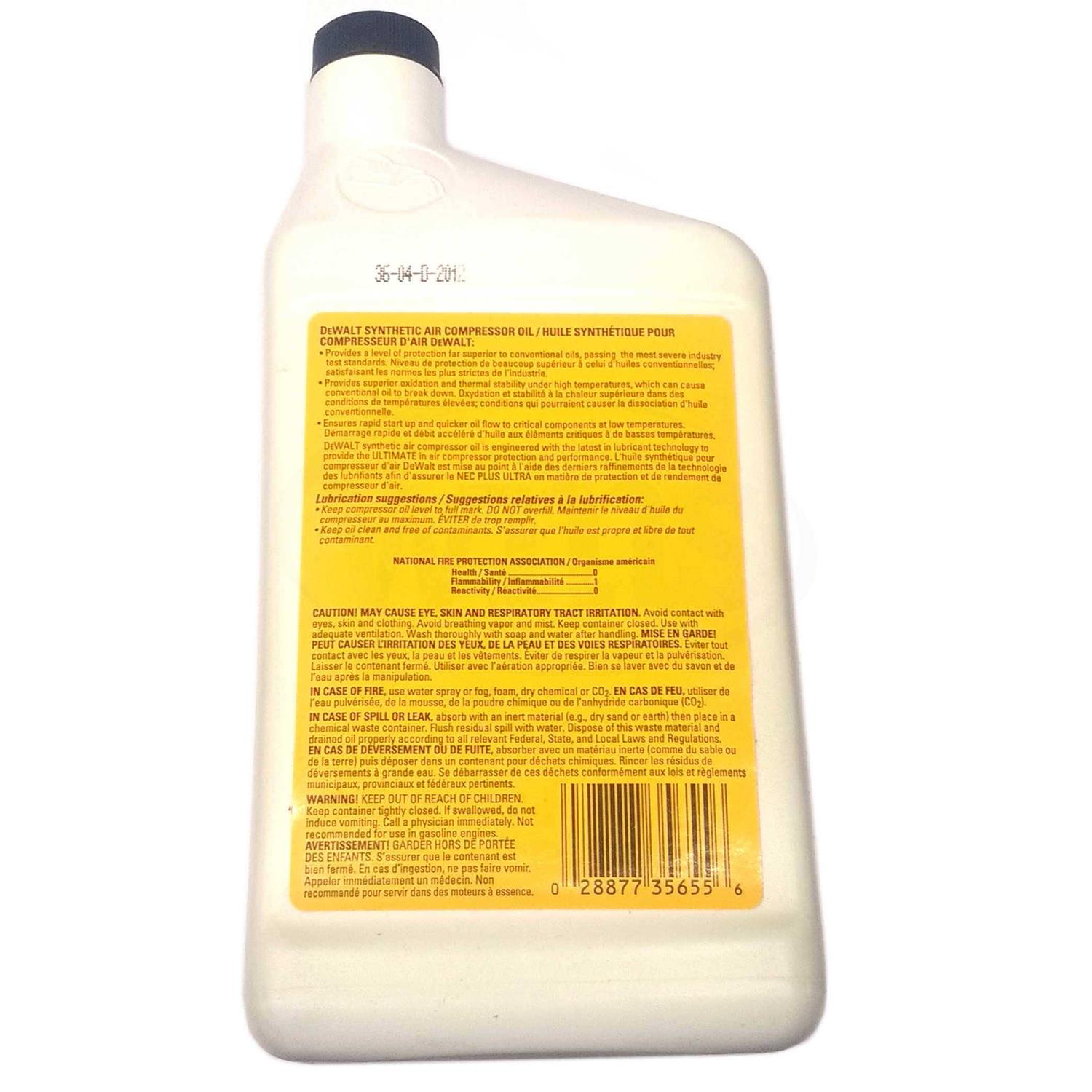 DeWalt D55001 Compressor Oil Synthetic 1 Quart