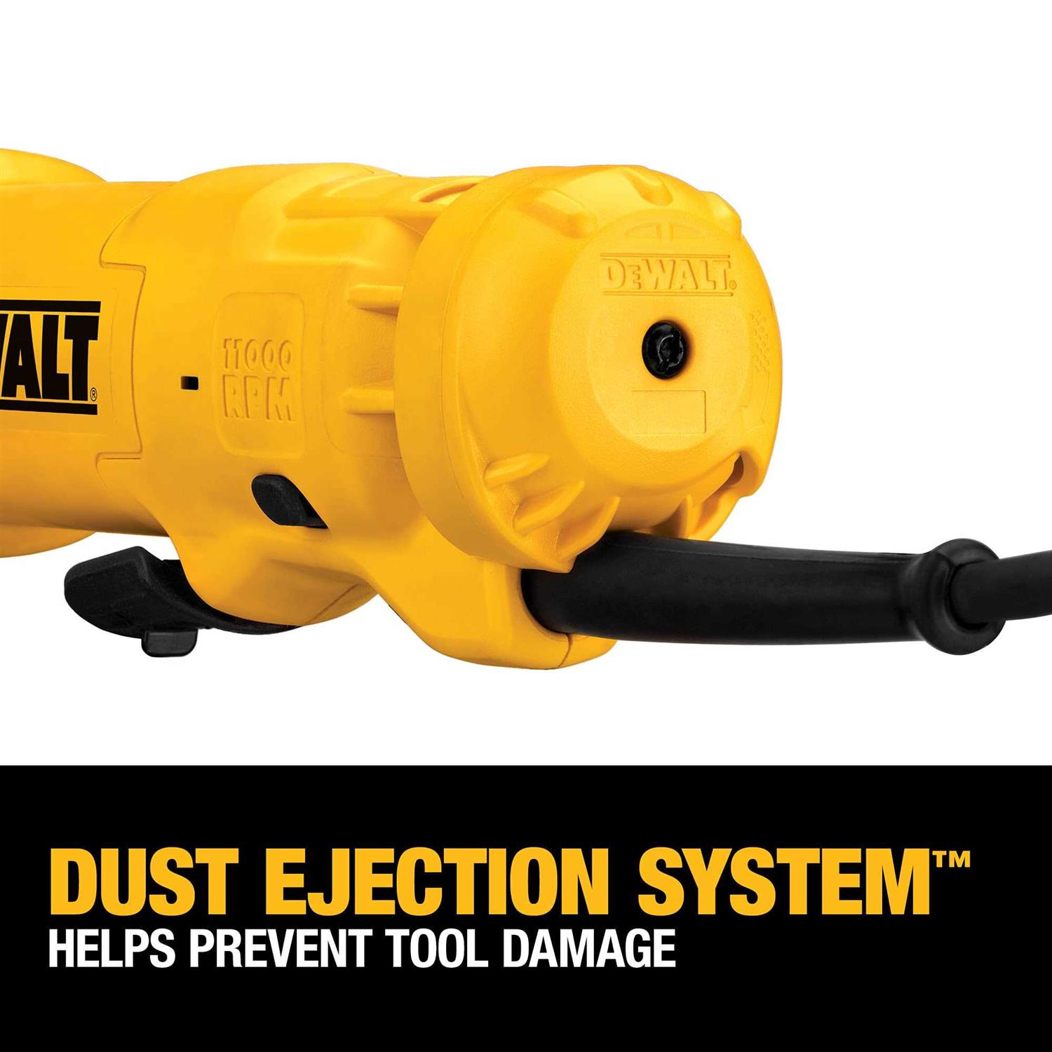 It’s Dust Ejection System provides durability by ejecting damaging dust and debris particles that enter the tool. The oversized brushes provide 2X brush life over previous model (D28402) and the large spiral bevel gear provides long transmission life. the low profile gear case allows for access into tighter spaces. This grinder offers a One-Touch guard that allows for 360 degree rotation of the guard with a single action. The Quick-Change wheel release allows tool free wheel removal without need for a wrench. The No Lock-On Paddle switch lock-off provides the user protection from accidental start up. Matching wheel flanges allow the use of common accessories.