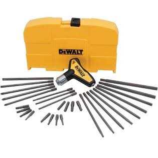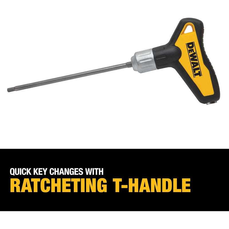 The DEWALT 31 Piece Ratcheting T Handle Hex Key Set (DWHT70265) includes a multitude of bits to tackle a variety of jobs. Quick-change keys are provided with the heavy-duty ratcheting T handle.
