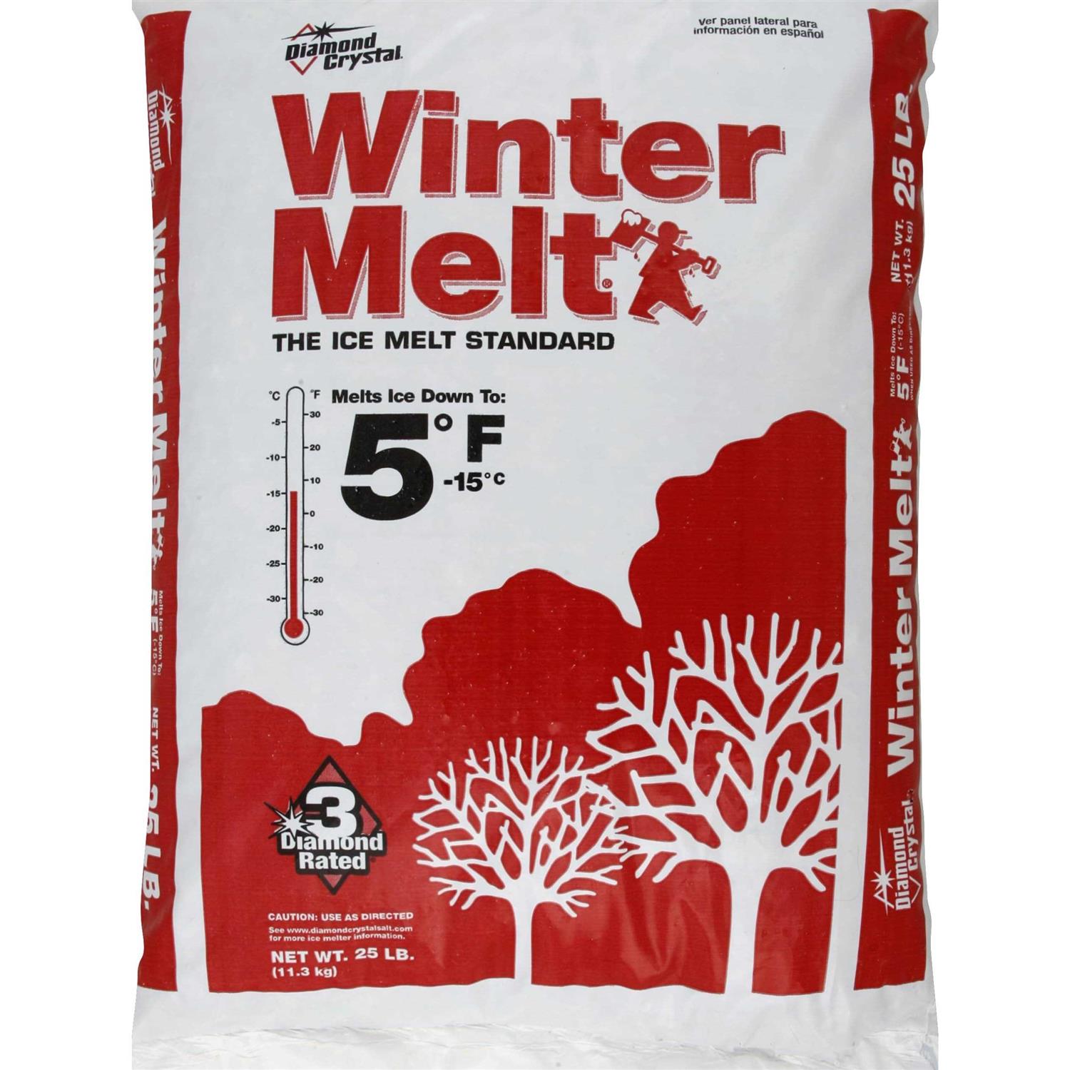 Remove from website per Terry and Zack 11/16/22 The Ice Melt Standard At temperatures around 15°F and higher, Winter Melt Ice Melt Salt sets the standard for winter ice melt by melting more ice than its expensive counterparts. Made with pure salt, Winter Melt Ice Melt Salt is the natural choice to melt ice in temperatures as low as 5 °F / -15 °C. Always a cost-effective way to maintain your driveways, sidewalks and walkways on icy, cold days. And depending on the strength of a storm, or how strong you feel on that particular day, it comes in a variety of convenient sizes for the job at hand. Winter Melt Ice Melt Salt features a unique blend of large and small melting Sodium Chloride crystals working in combination to melt ice quickly, and then keep it melting, long after application. Directions: Remove slush and as much loose snow as possible before ice melt application. Spread Winter Melt Ice Melt Salt evenly across surface area. Apply ½–1 cup per square yard using a scoop, depending on ice thickness and air temperature, as needed. Reapply as necessary. When ice and snow soften, remove slush and any excess ice melt from pavement for good concrete maintenance.