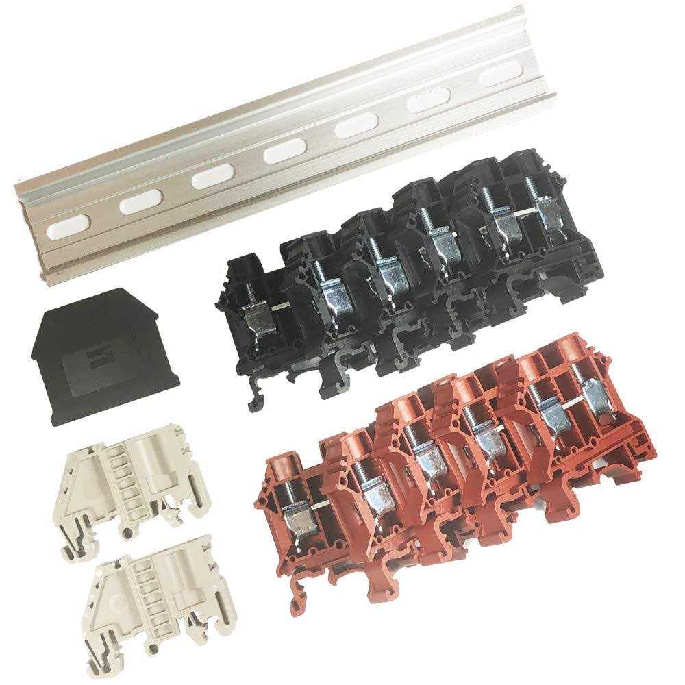 Dinkle Assembly DK10N Red/Black 10 Gang Box Connector DIN Rail Terminal Blocks, 6-20 AWG, 60 Amp, 600 Volt Separate Circuits